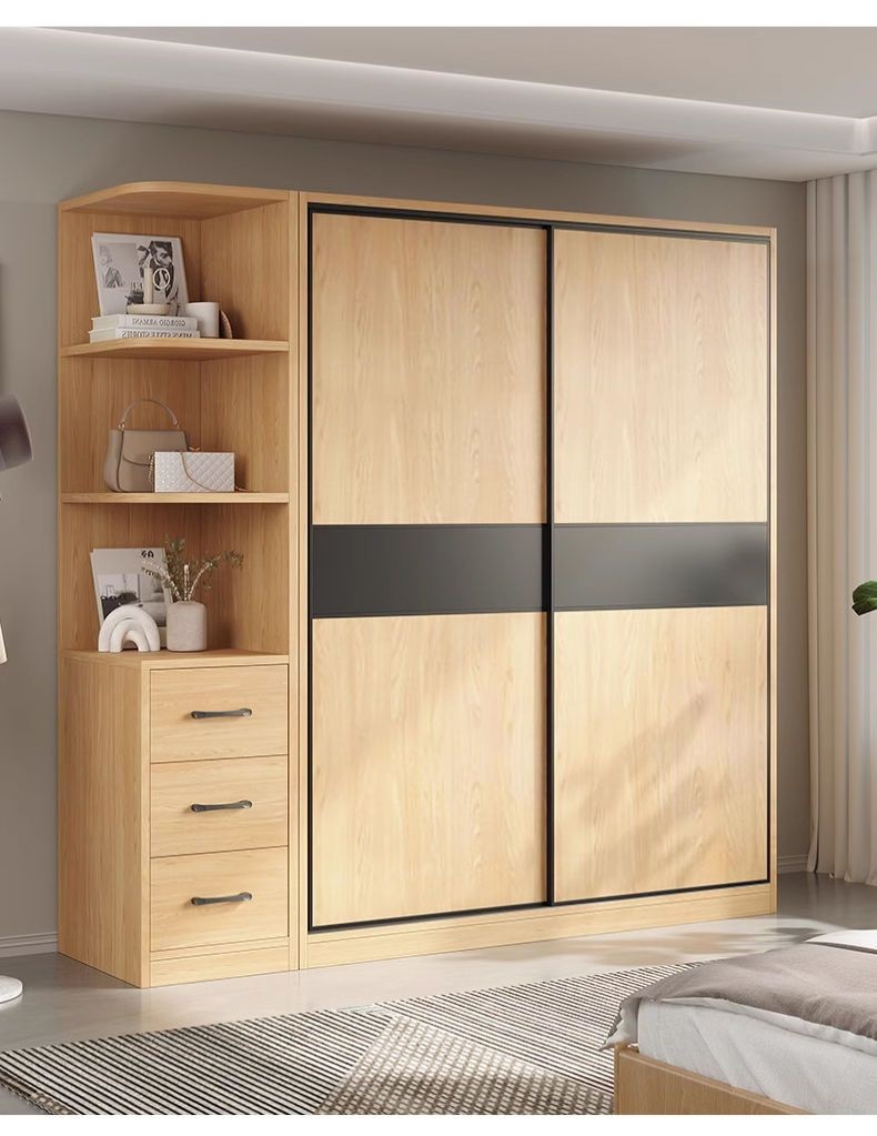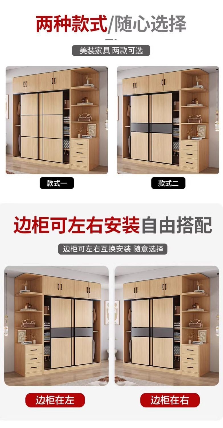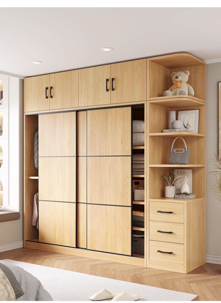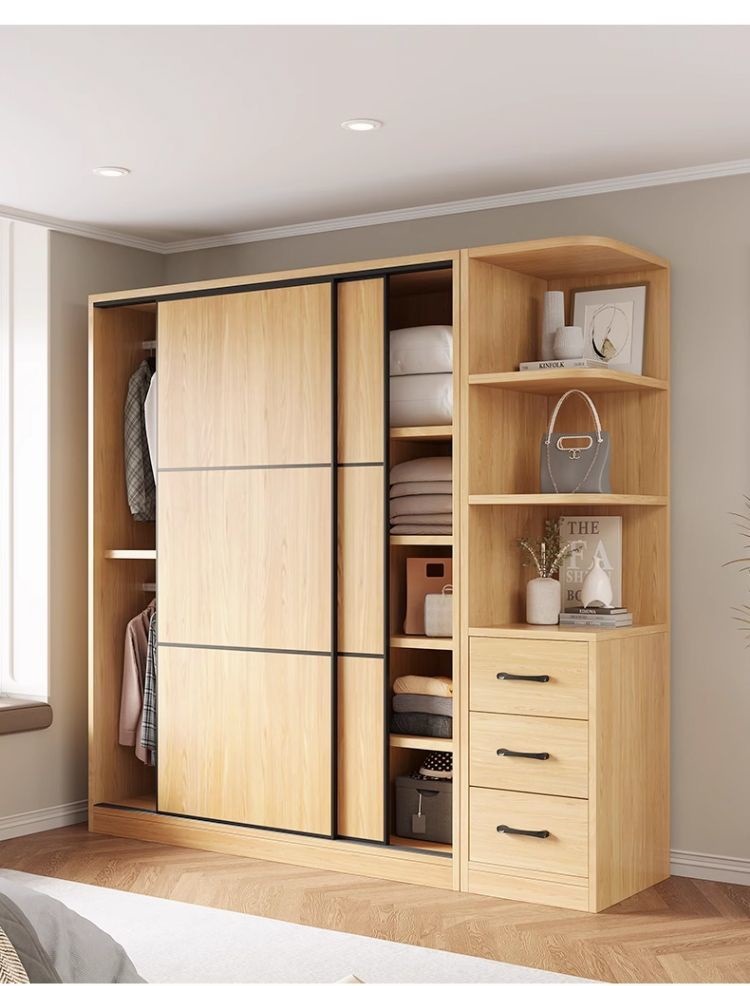미닫이 문 전체 단단한 나무 옷장 미닫이 문 곰팡이 방지 작은 아파트 침실 보관 캐비닛 가정용 옷장