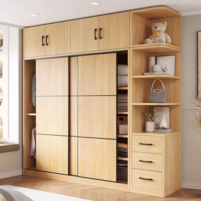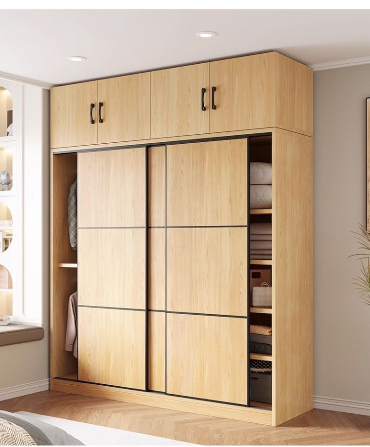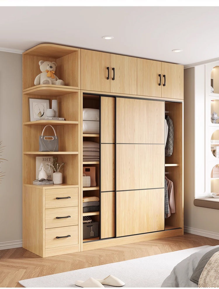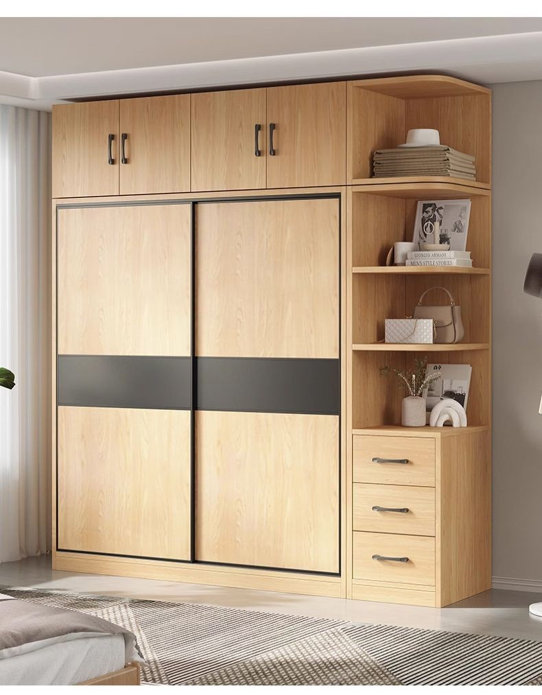 미닫이 문 전체 단단한 나무 옷장 미닫이 문 곰팡이 방지 작은 아파트 침실 보관 캐비닛 가정용 옷장