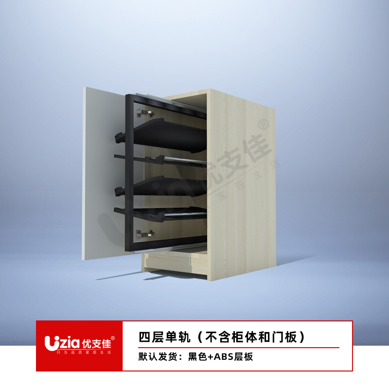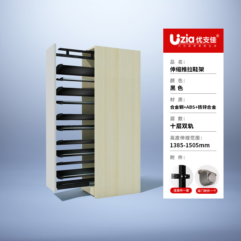 • [설치 패키지] 블랙 - 10겹 - 텔레스코픽 이중 레일 - 풀아웃/사이드 도어 개방용 범용