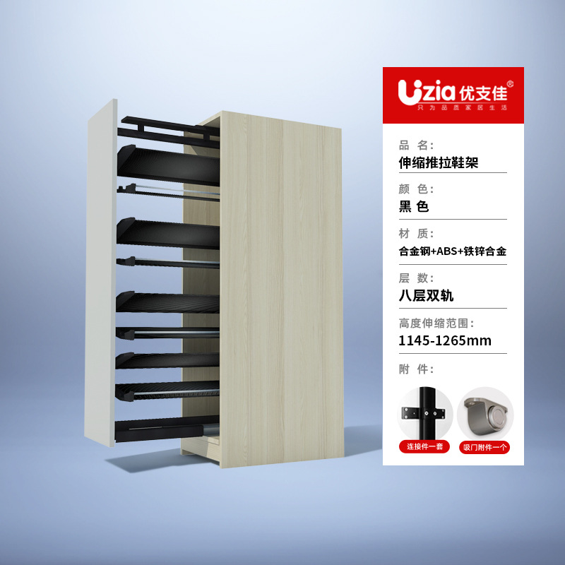 • [설치 패키지] 블랙 - 8겹 - 텔레스코픽 이중 레일 - 풀아웃/사이드 도어 개방용 범용