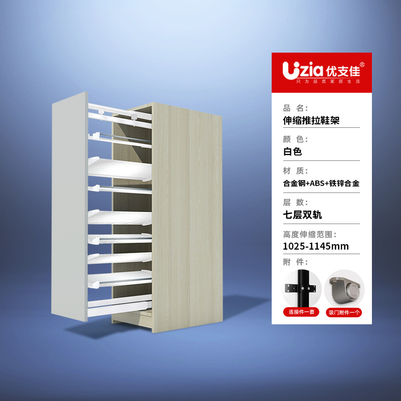 • [설치 패키지] 화이트 - 7단 - 텔레스코픽 복선 - 풀아웃/사이드 도어 개폐용 범용