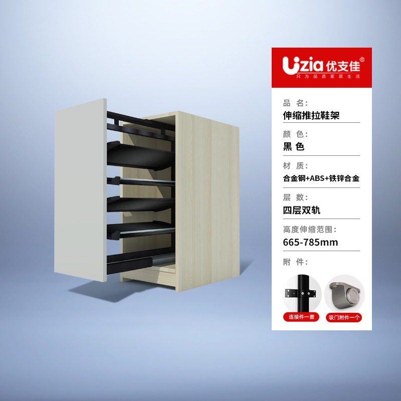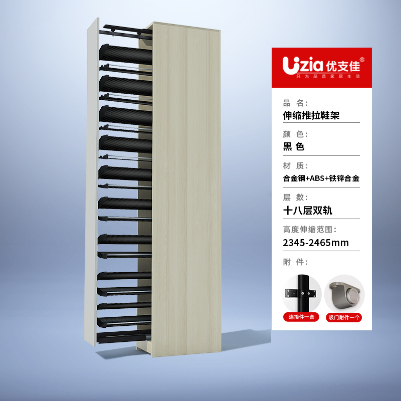 • [설치 패키지] 블랙 - 18겹 - 텔레스코픽 이중 레일 - 풀아웃/사이드 도어 개방용 범용