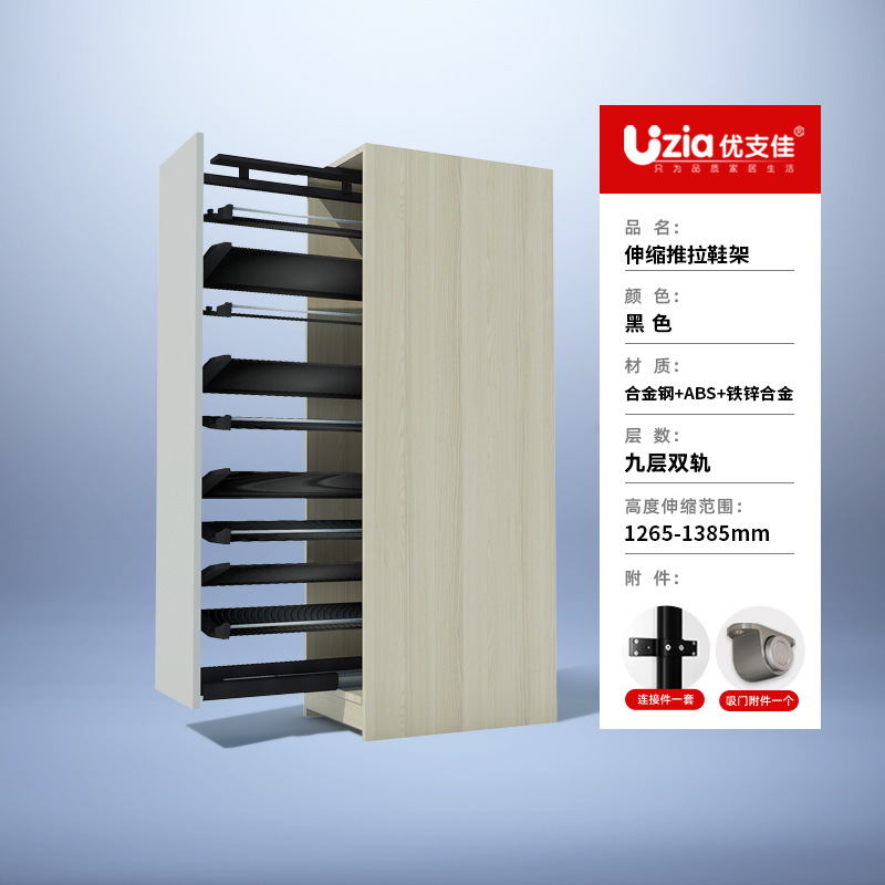 • [패키지 설치] 블랙 - 9단 - 텔레스코픽 복선 - 풀아웃/사이드 도어 개폐용 범용