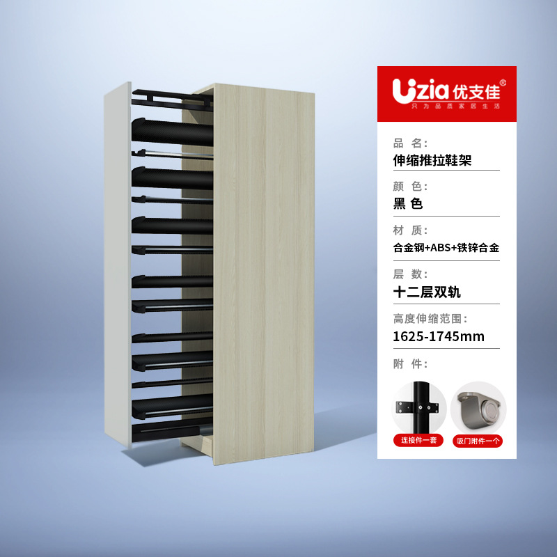 • [패키지 설치] 블랙 - 12단 - 텔레스코픽 복선 - 풀아웃/사이드 도어 개폐용 범용