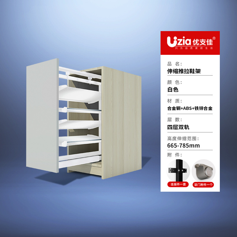 • [설치 패키지] 흰색 - 5겹 - 텔레스코픽 이중 레일 - 풀아웃/사이드 도어 개방용 범용
