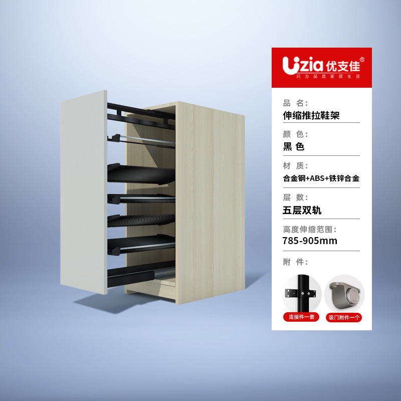 • [패키지 설치] 블랙 - 5단 - 텔레스코픽 복선 - 풀아웃/사이드 도어 개폐용 범용