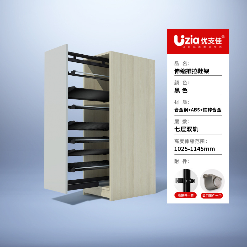• [패키지 설치] 블랙 - 7단 - 텔레스코픽 복선 - 풀아웃/사이드 도어 개폐용 범용