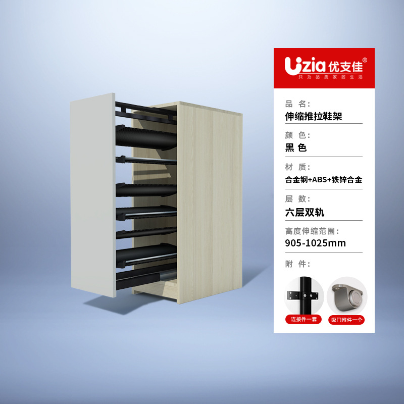 • [설치 패키지] 블랙 - 6단 - 텔레스코픽 복선 - 풀아웃/사이드 도어 개폐용 범용