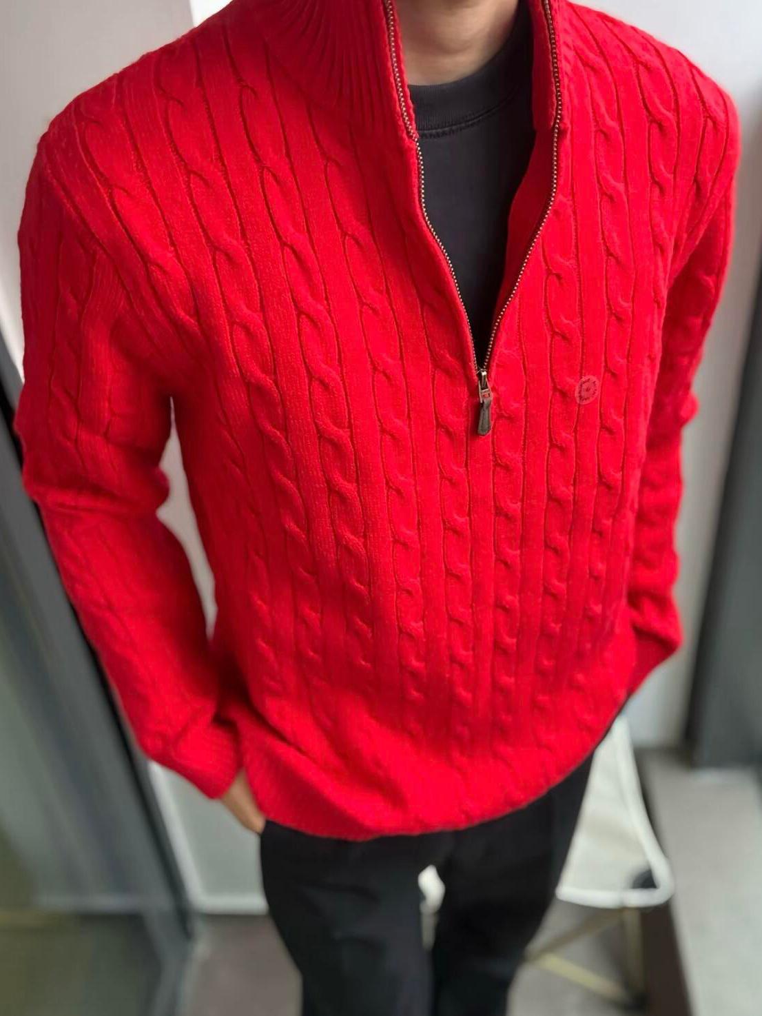 RL 러프 포니 로고 가을, 겨울 하프 지퍼 스웨터 남성용 레드 스웨터 여성용 스탠드 칼라 자수 커플 트위스트스토어 가기