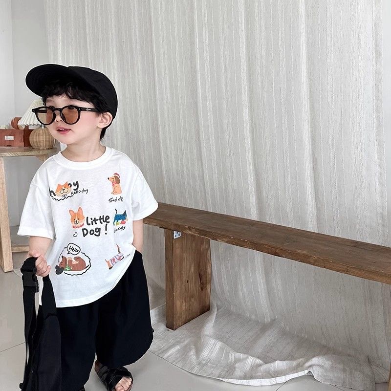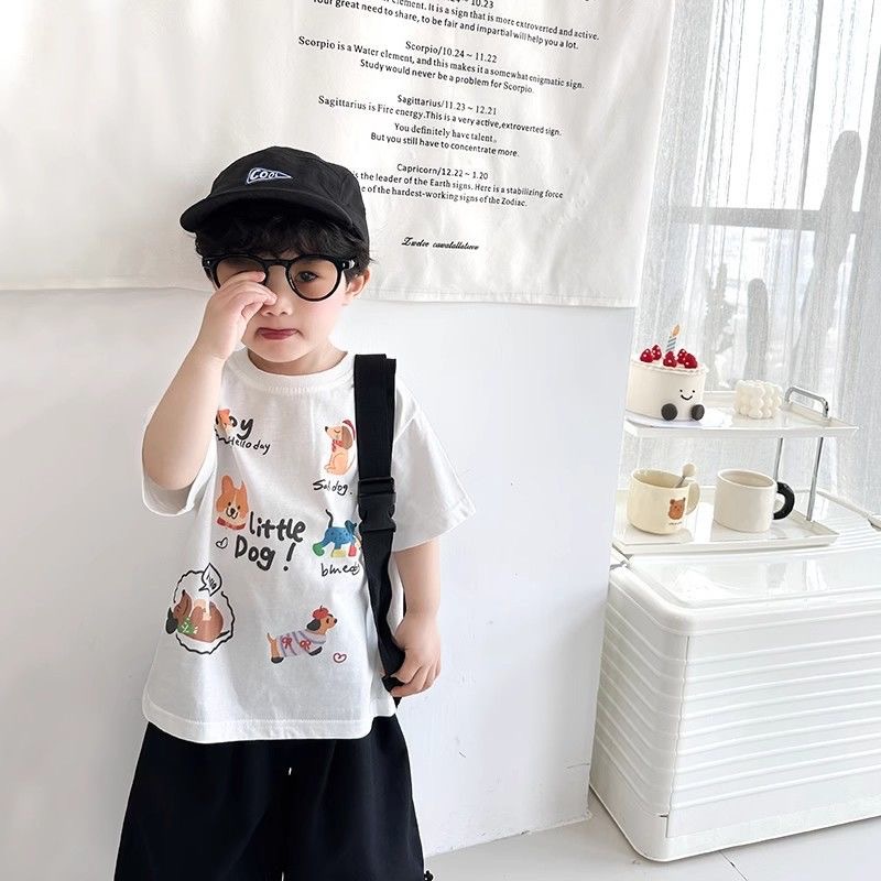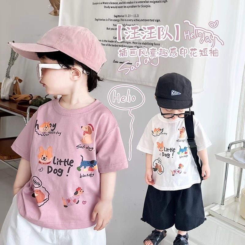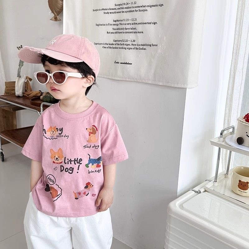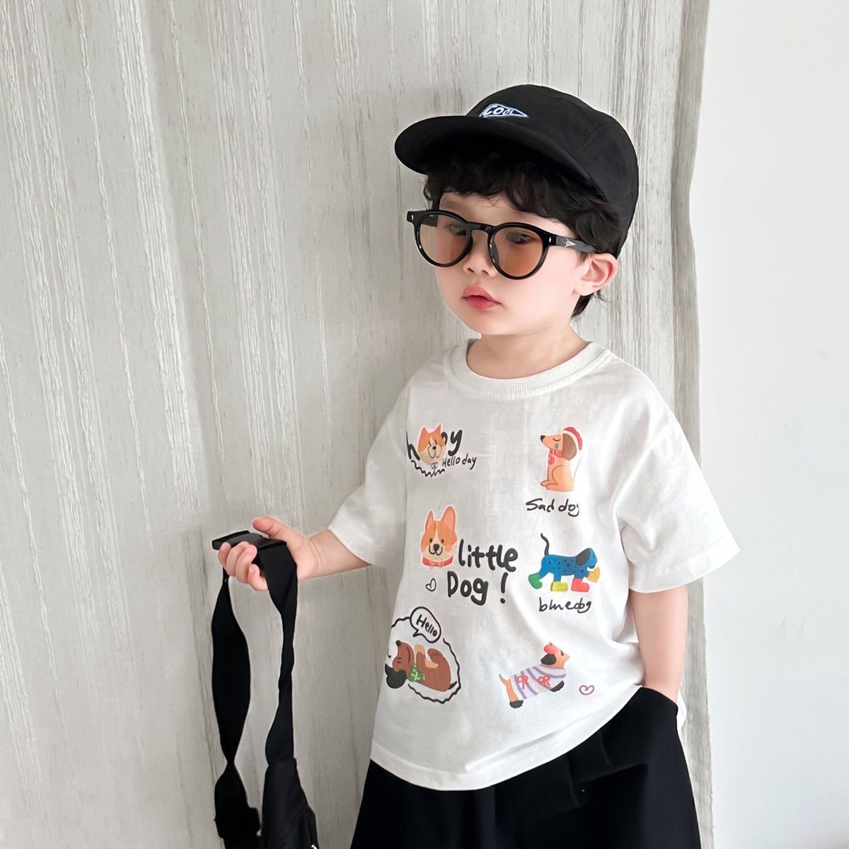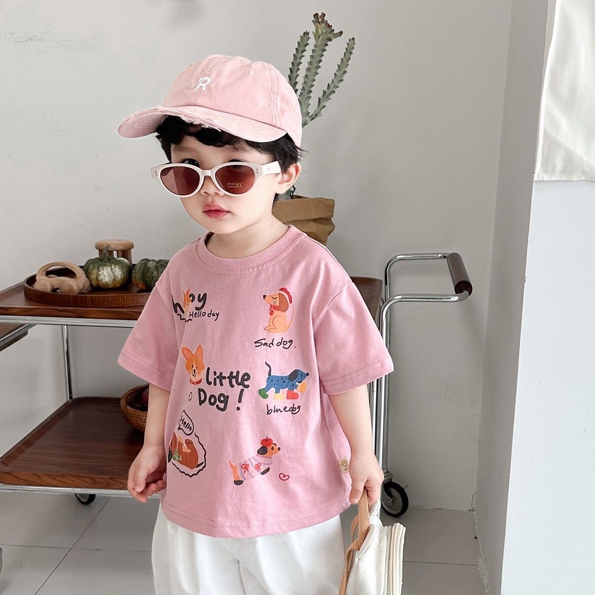 여름 소년 순면 반팔 티셔츠 새로운 어린이 베이비 탑 소년 여름 반팔 셔츠 중대형 어린이 티셔츠 유행스토어 가기