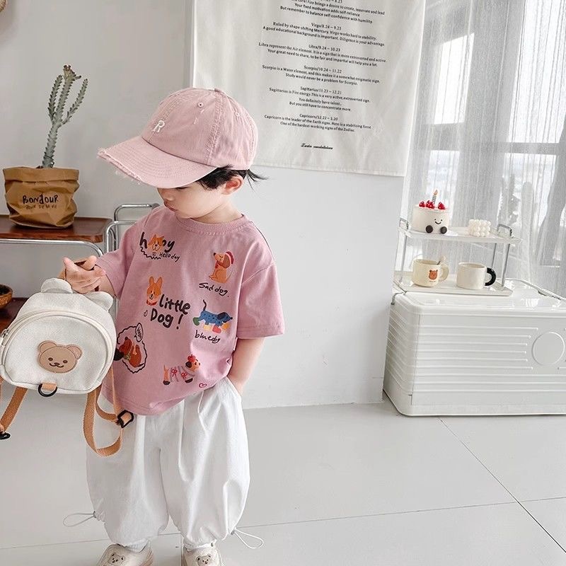 여름 소년 순면 반팔 티셔츠 새로운 어린이 베이비 탑 소년 여름 반팔 셔츠 중대형 어린이 티셔츠 유행