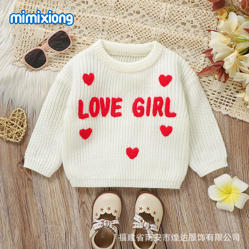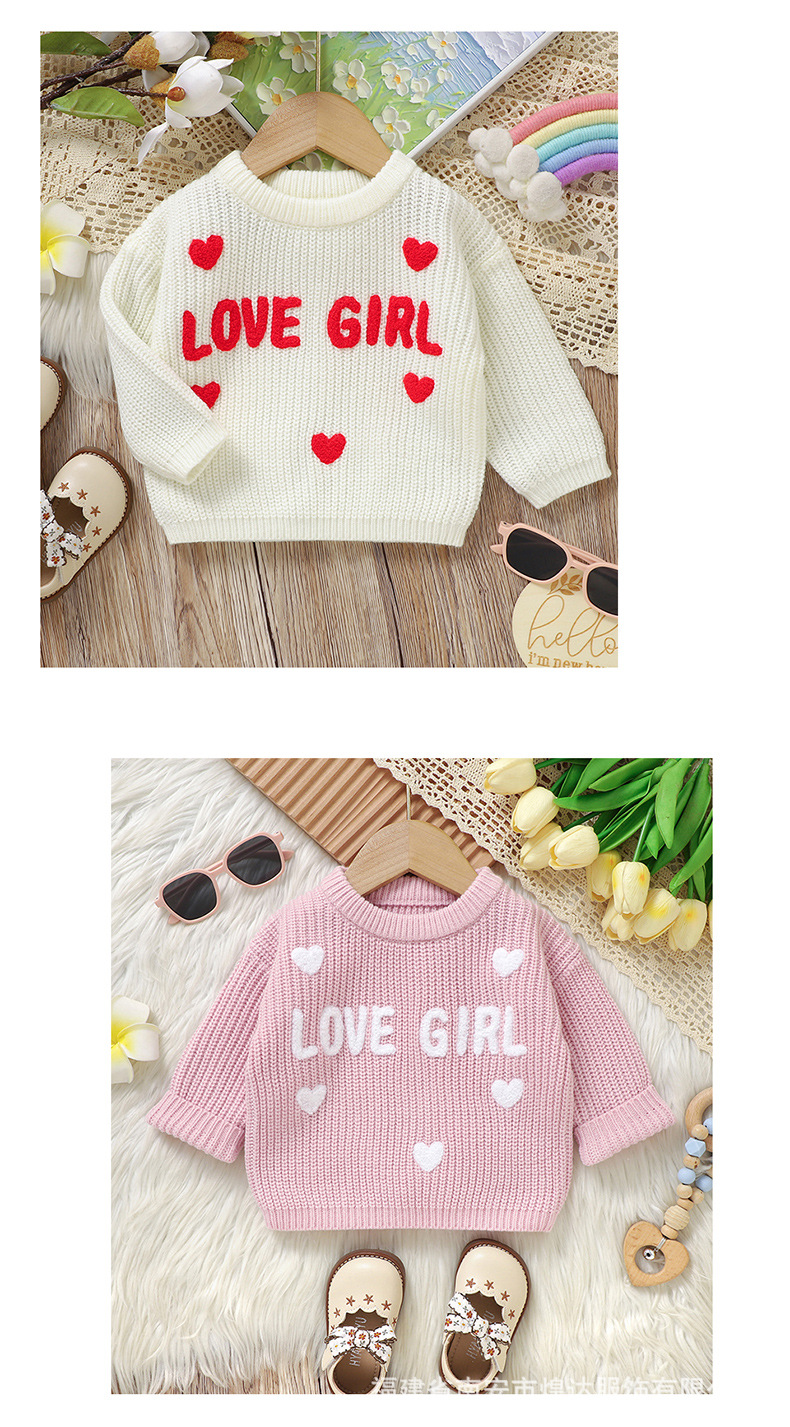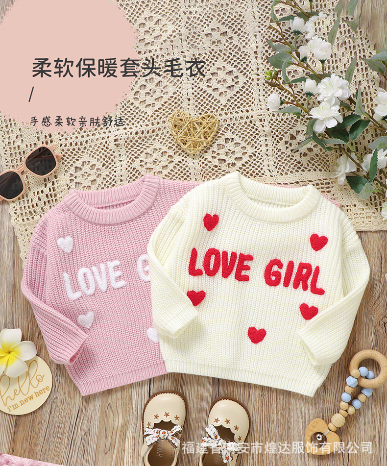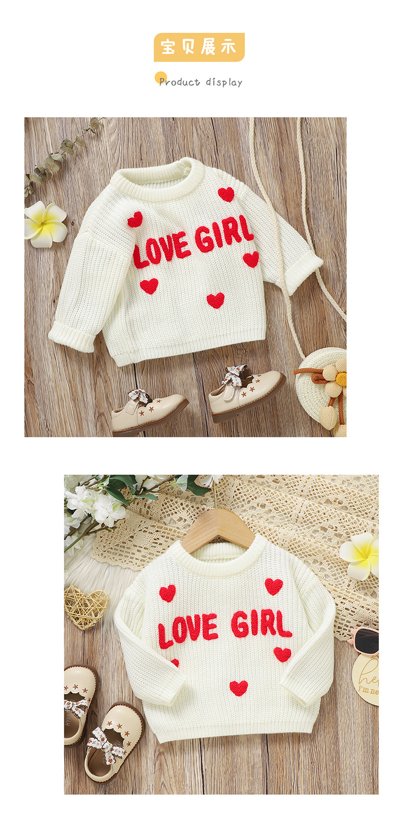 INS 핫 세일 가을 겨울 신작 유아 니트 문자 수건 자수 발렌타인 데이 탑