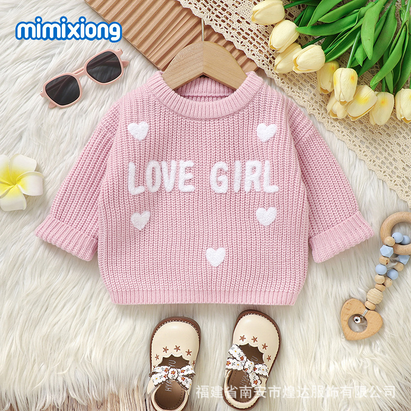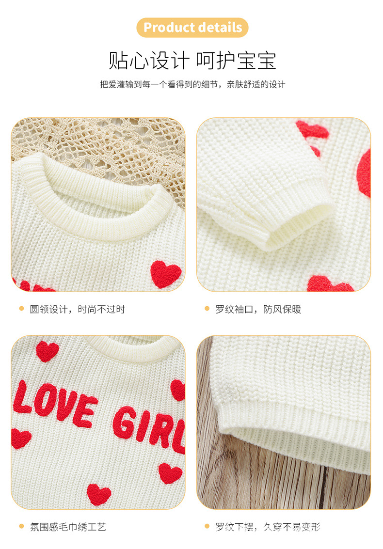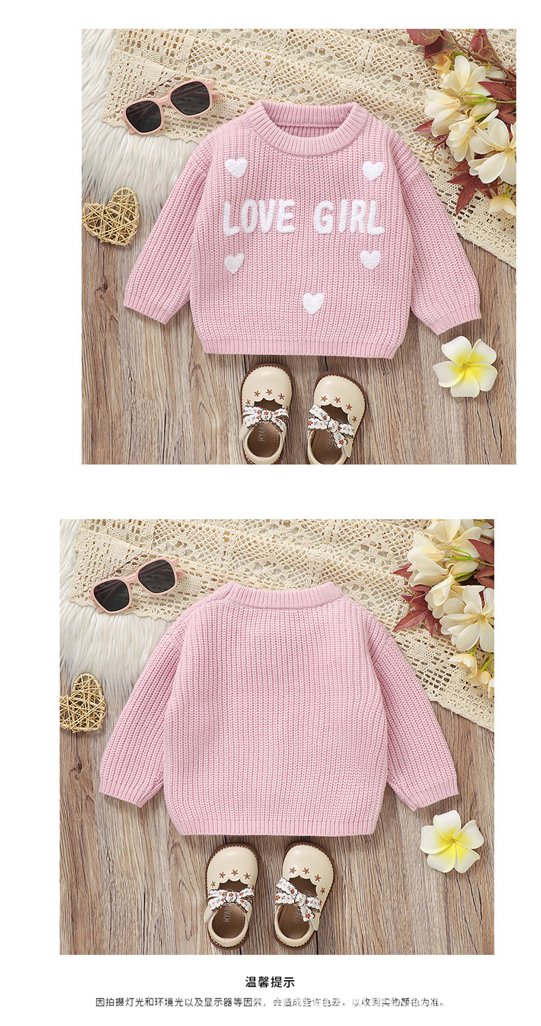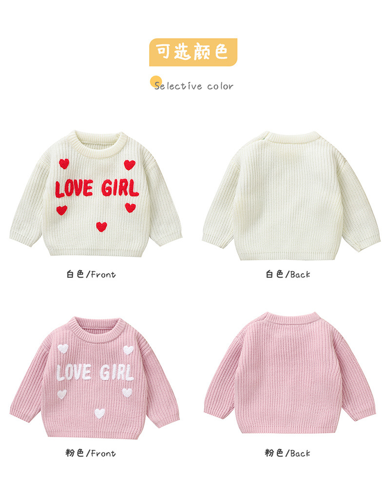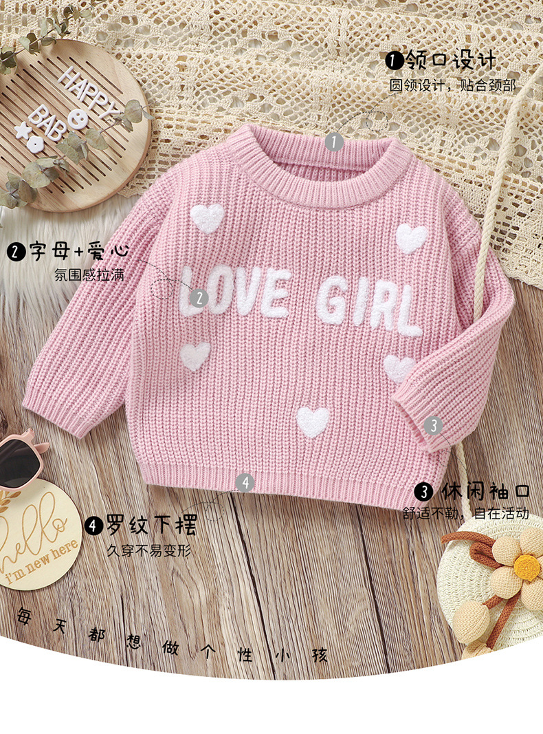 INS 핫 세일 가을 겨울 신작 유아 니트 문자 수건 자수 발렌타인 데이 탑