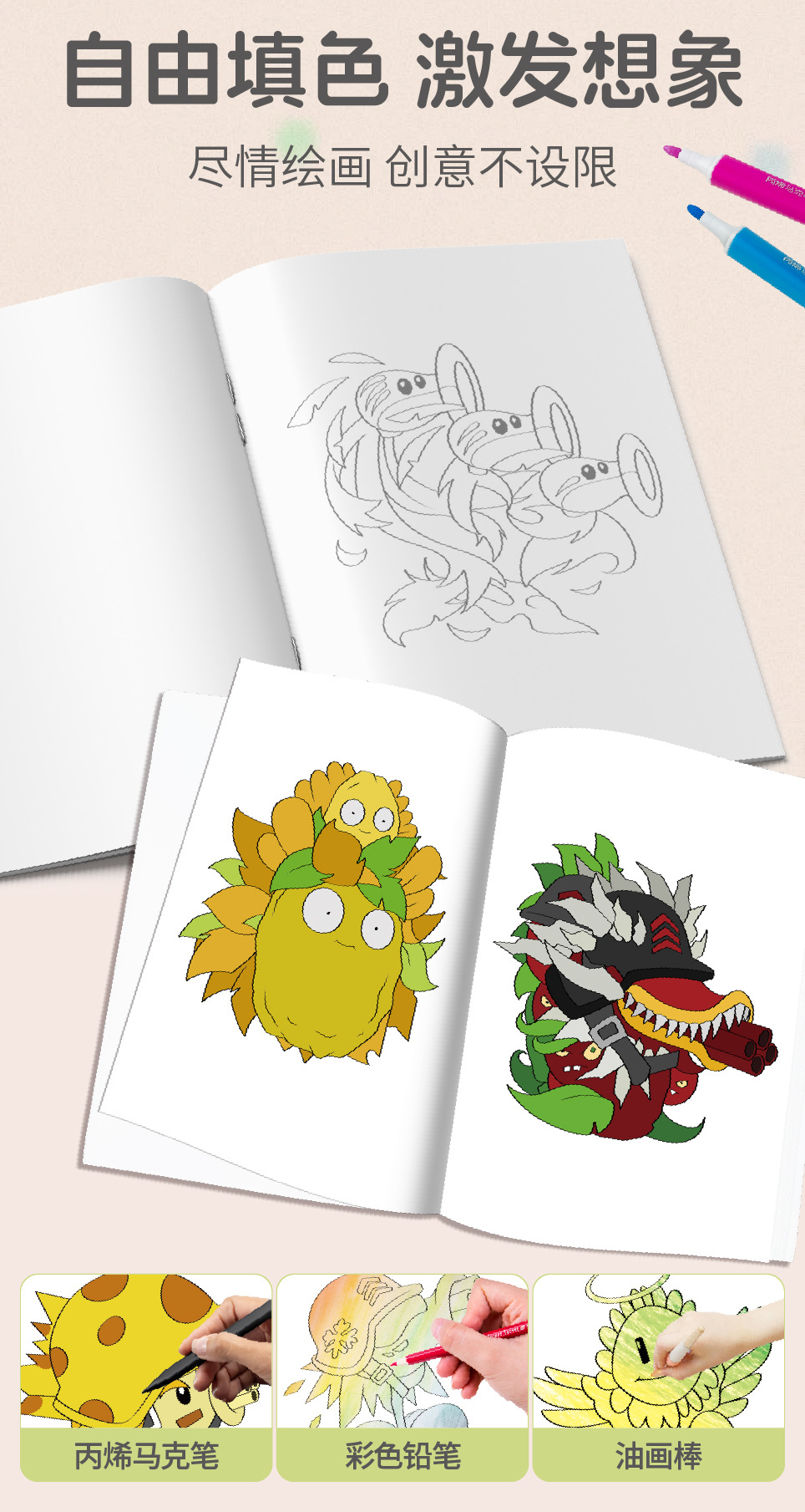 식물 대 좀비 색칠하기 책 그리기 그림 애니메이션 선 그리기 게임 만화 트레이싱 책 어린이 그림 그리기 펜스토어 가기