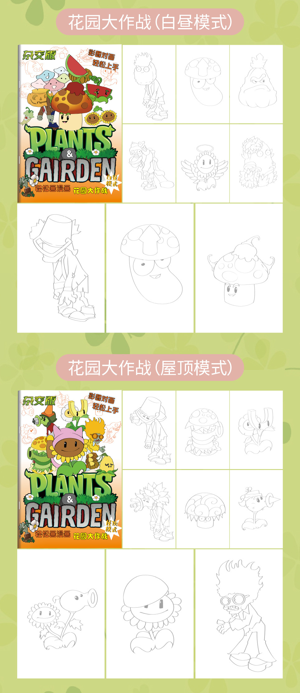 식물 대 좀비 색칠하기 책 그리기 그림 애니메이션 선 그리기 게임 만화 트레이싱 책 어린이 그림 그리기 펜