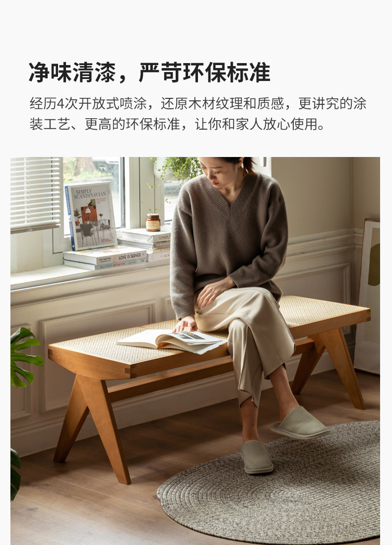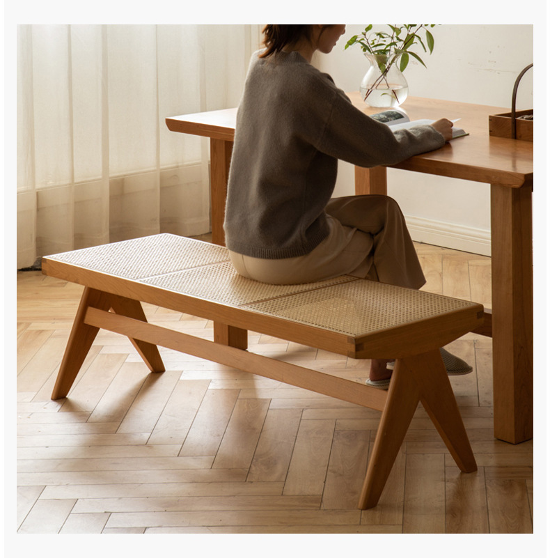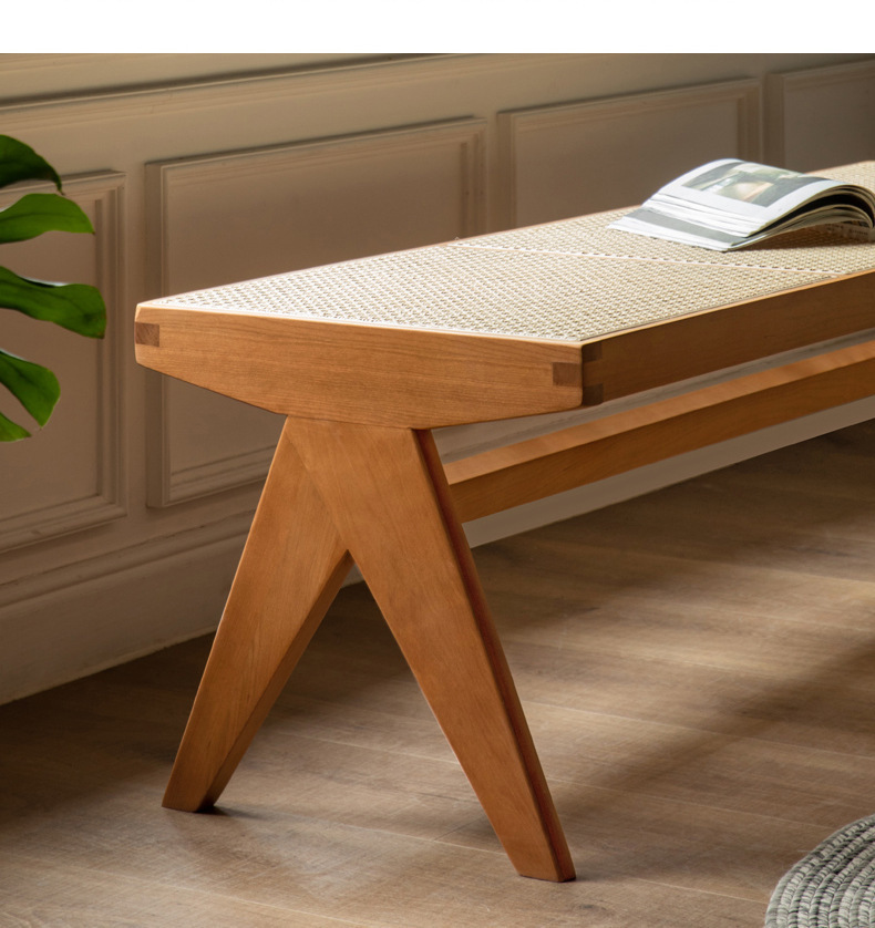인터넷 연예인 가정용 신발 교환 의자 거실 식당 의자 벤치 북유럽 단단한 나무 등나무 벤치 복고풍 Chandigarh 긴 의자스토어 가기