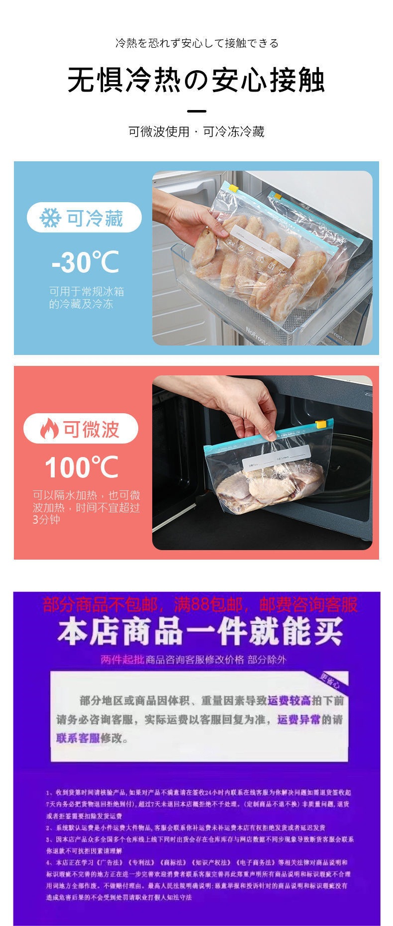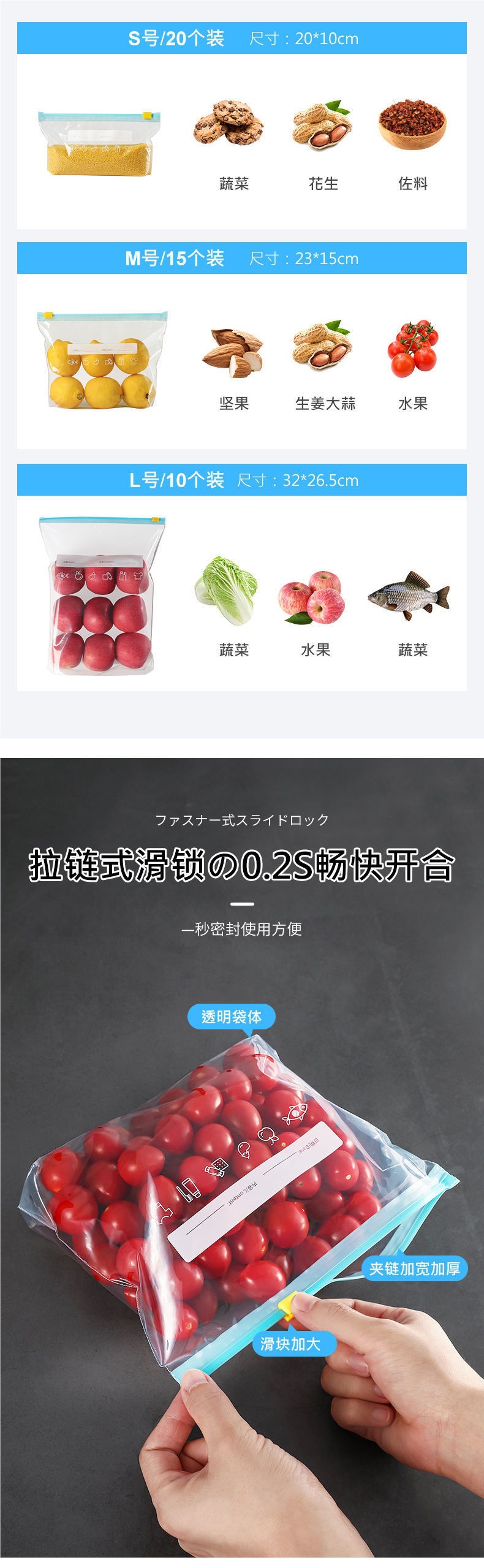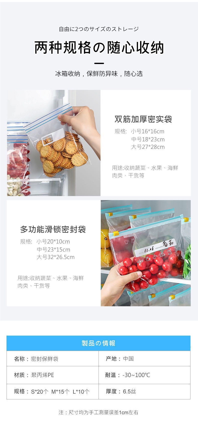 두꺼운 신선 유지 가방 가정용 냉장고 밀봉 가방 지퍼가 달린 식품 Jeske
