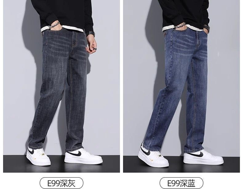 가을, 겨울 남성 복고풍 스트레이트 남성 청바지 플러스 벨벳 두꺼운 스트레치 루즈 캐주얼 긴 바지 남성 트렌디스토어 가기