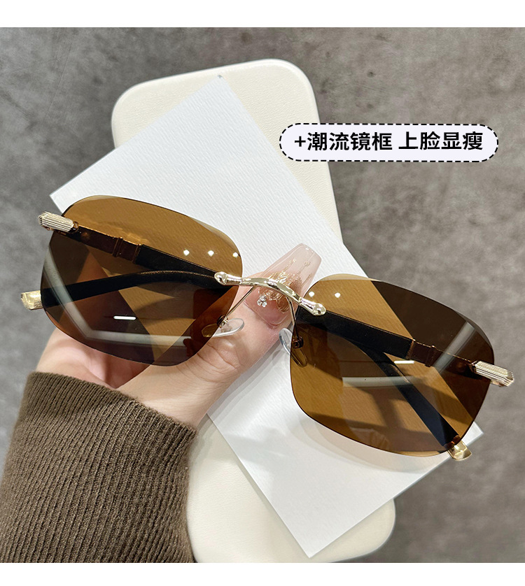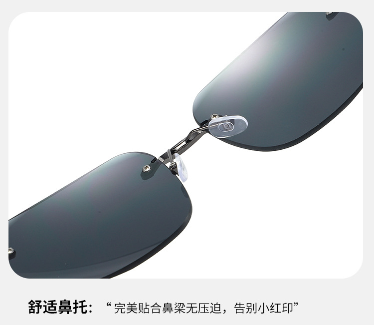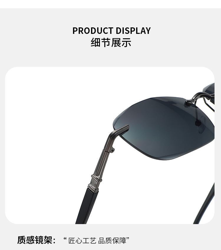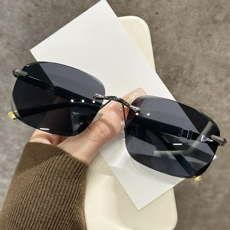 새로운 뜨거운 판매 유럽과 미국의 패션 무테 컷 엣지 선글라스 남자 느낌 사각형 프레임 안티 uv 운전 선글라스