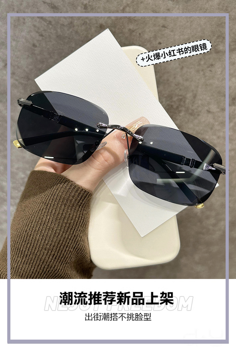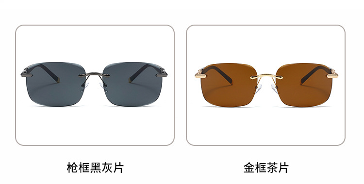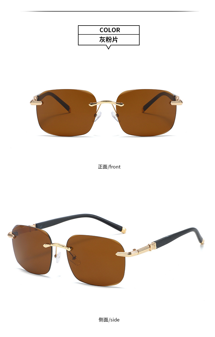 새로운 뜨거운 판매 유럽과 미국의 패션 무테 컷 엣지 선글라스 남자 느낌 사각형 프레임 안티 uv 운전 선글라스스토어 가기