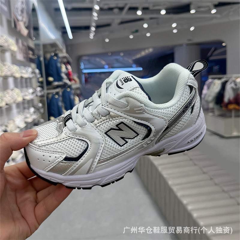 국경 간 nb530 어린이 신발 2025 봄과 가을 메쉬 통기성 운동화 새로운 남성과 여성의 아빠 신발스토어 가기