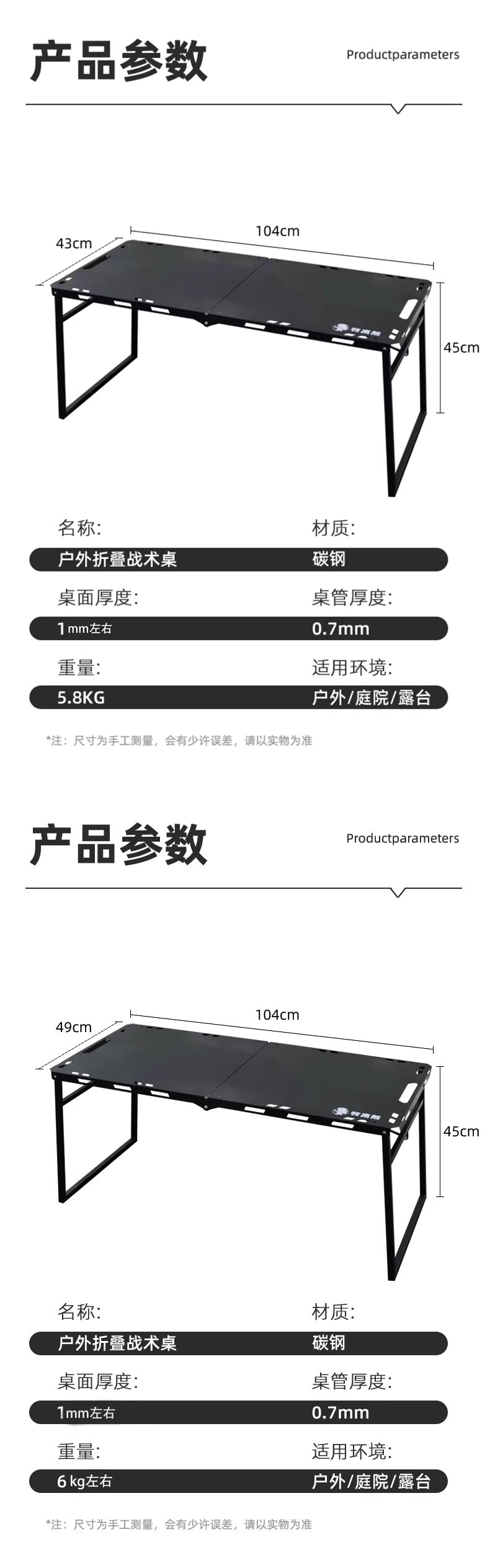 • [클래식] 블랙 전술 접이식 테이블 + 라이트 스탠드 + 무료 보관 가방