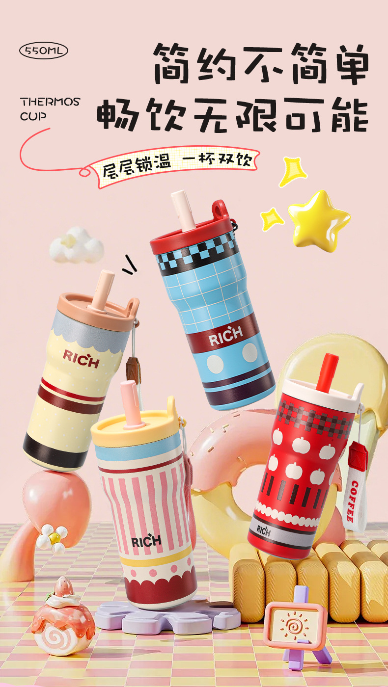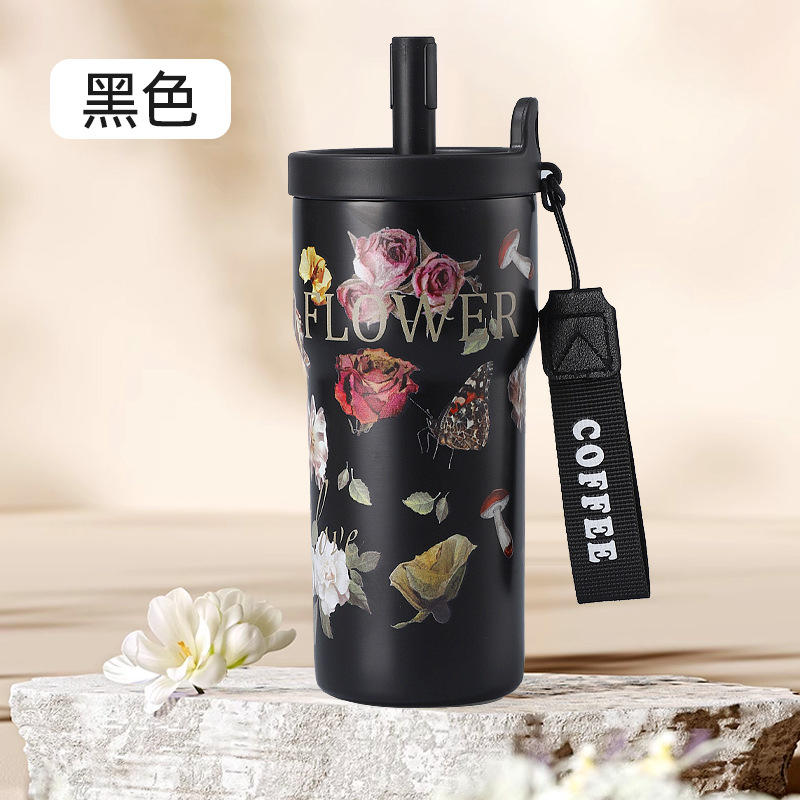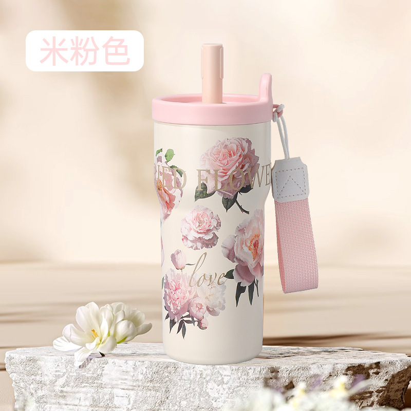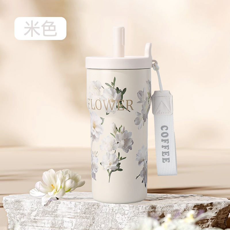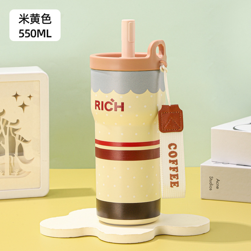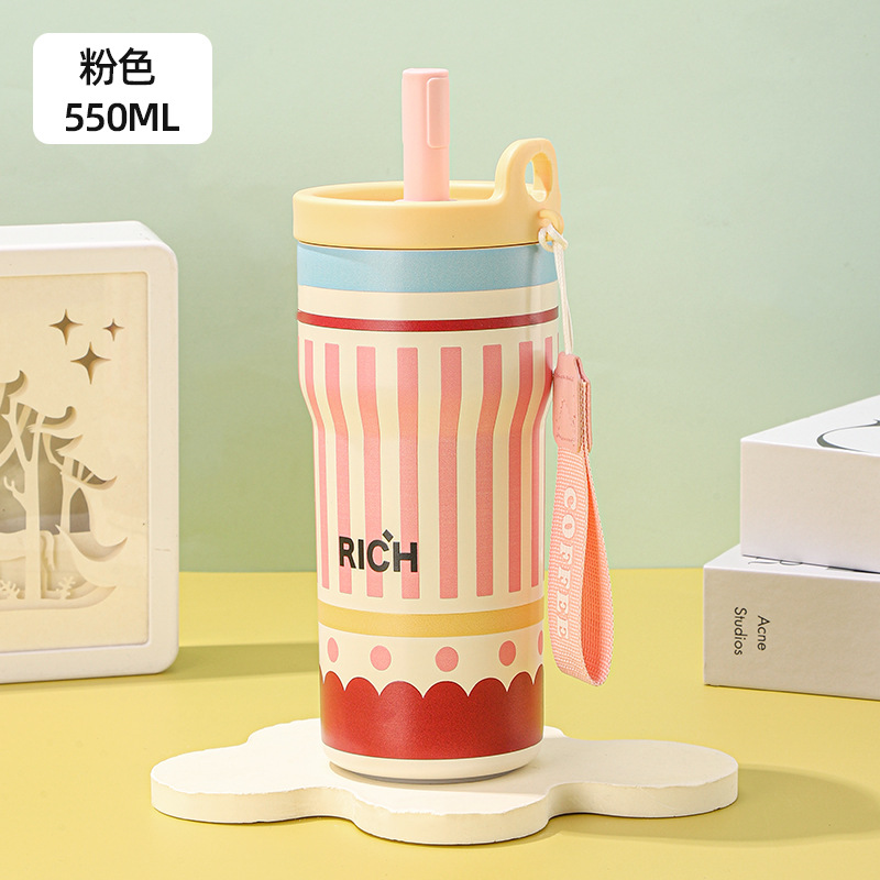 여성을 위한 새로운 316 스테인레스 스틸 보온병 컵, 휴대용, 고급스러운, 대용량 밀짚 커피 컵, 귀여운 가벼운 럭셔리 워터 컵