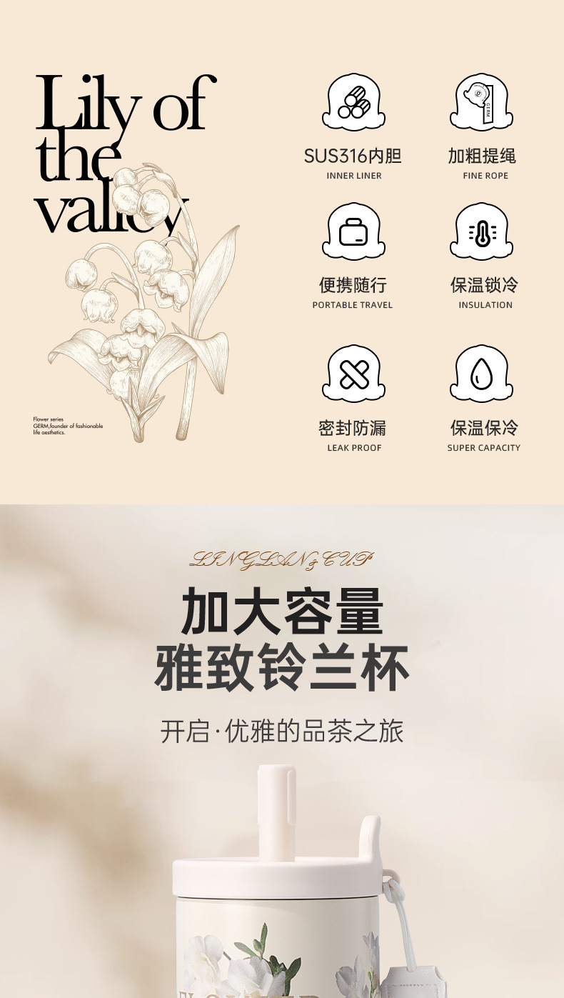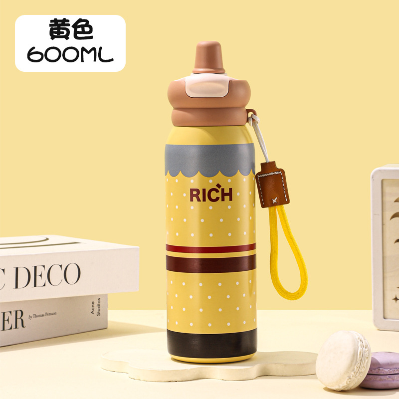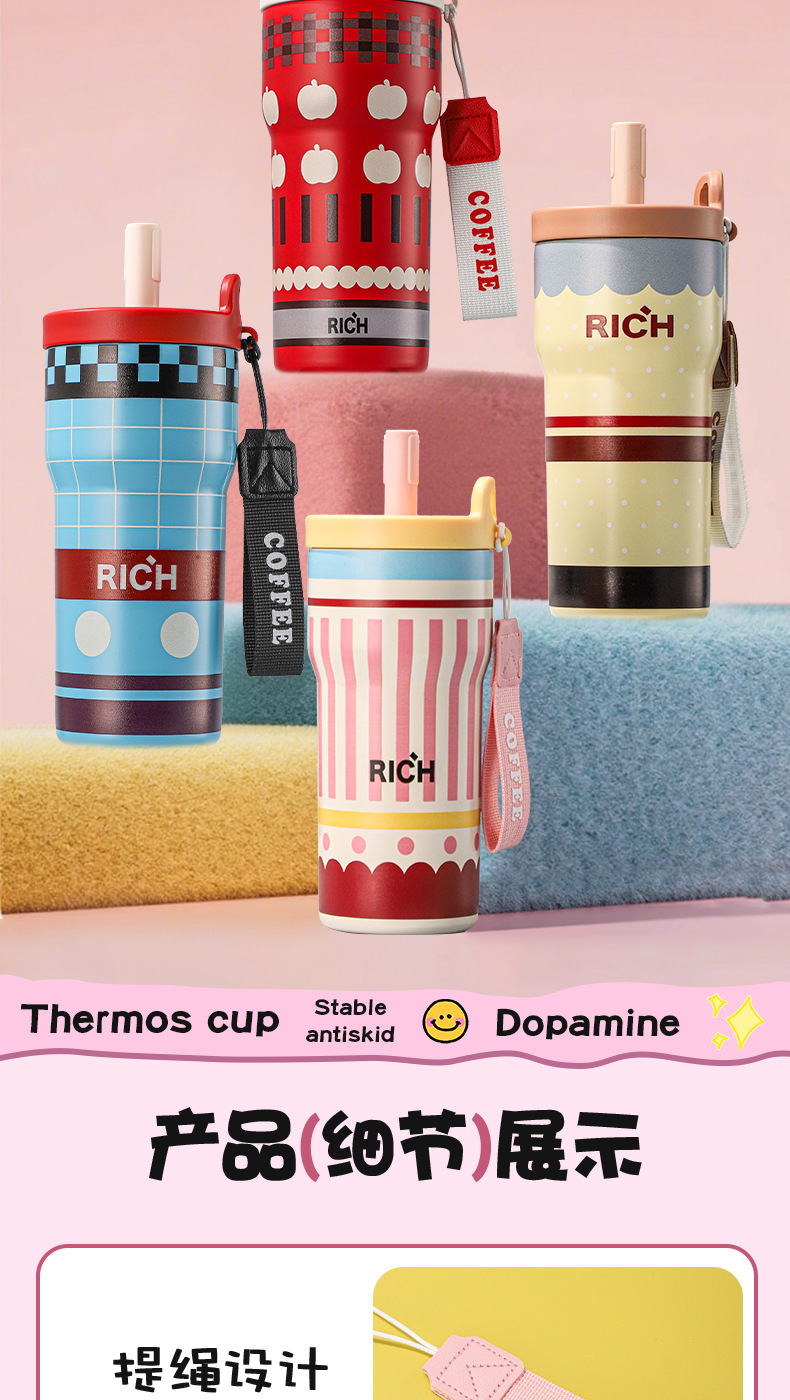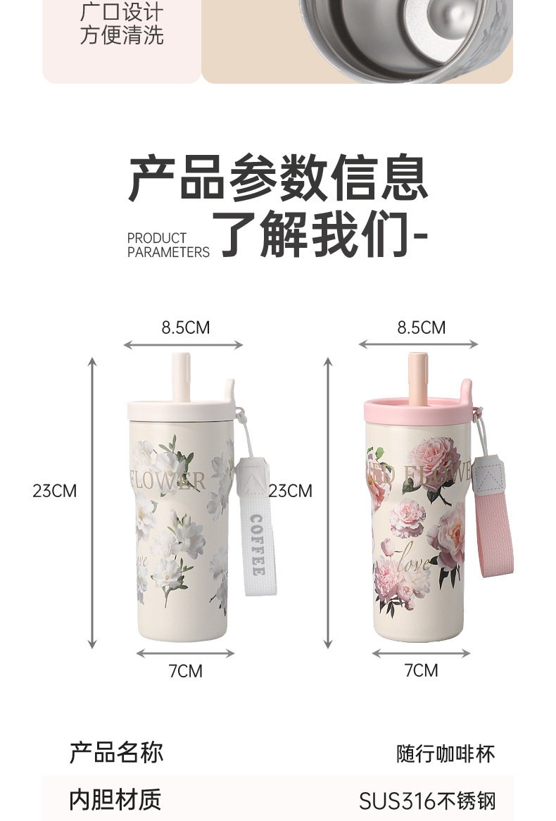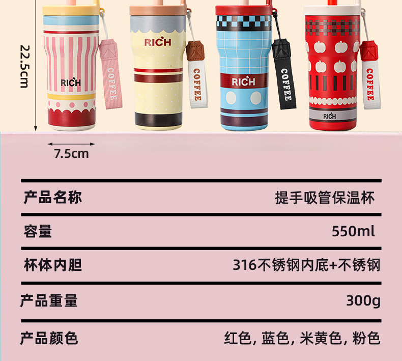 여성을 위한 새로운 316 스테인레스 스틸 보온병 컵, 휴대용, 고급스러운, 대용량 밀짚 커피 컵, 귀여운 가벼운 럭셔리 워터 컵