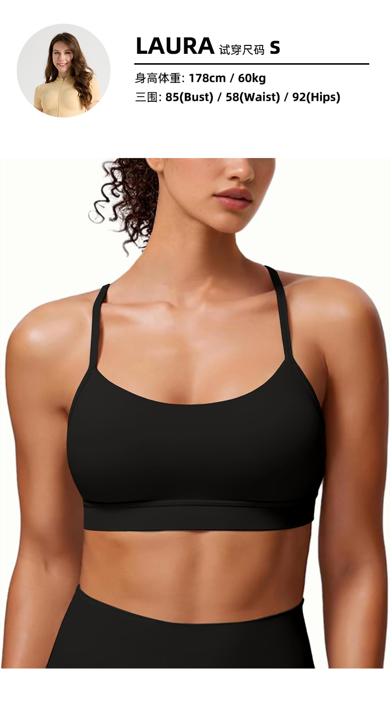 크로스보더 스포츠 브라, 얇은 어깨끈, 아름다운 등라인, 충격 방지, 피부 친화적, 누드감, 피트니스 탱크탑, 고탄력 요가 브라스토어 가기