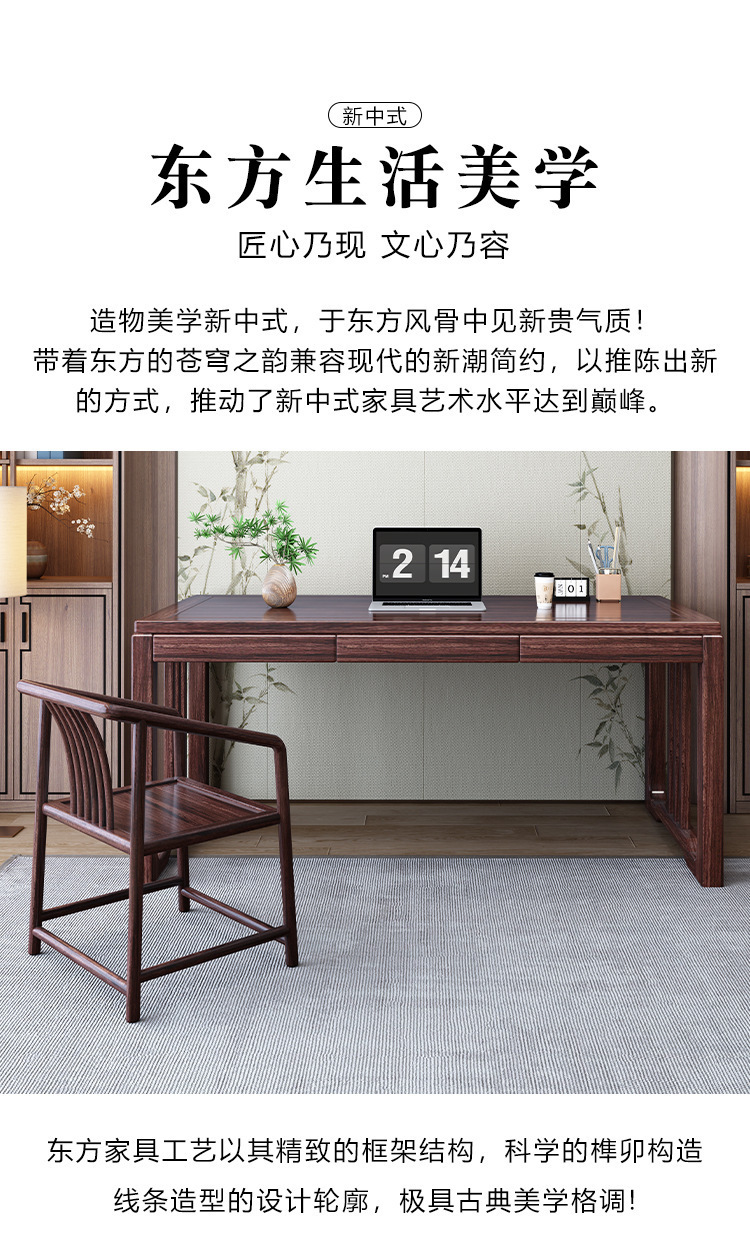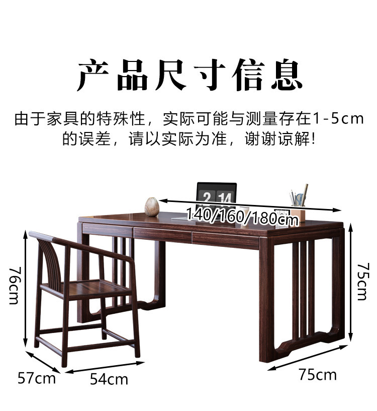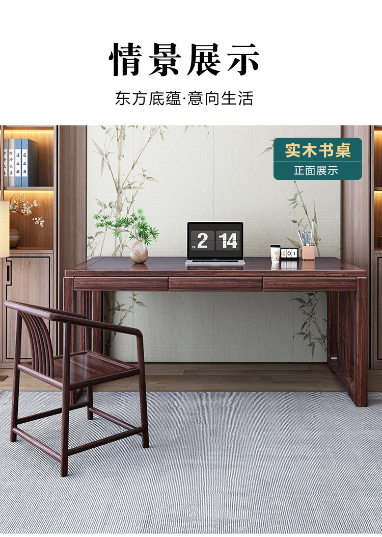 검은 골드 우드 새로운 중국 스타일 단단한 나무 책상과 의자 조합 현대 간단한 연구 컴퓨터 책상 책상 사무실 책상 공장스토어 가기
