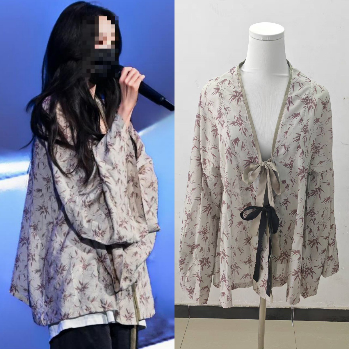 장기 재고 2025 여름 Yang Mi 같은 스타일의 고급 복고풍 새로운 중국 스타일 프린트 셔츠 재킷 여성 민족 스타일 탑스토어 가기