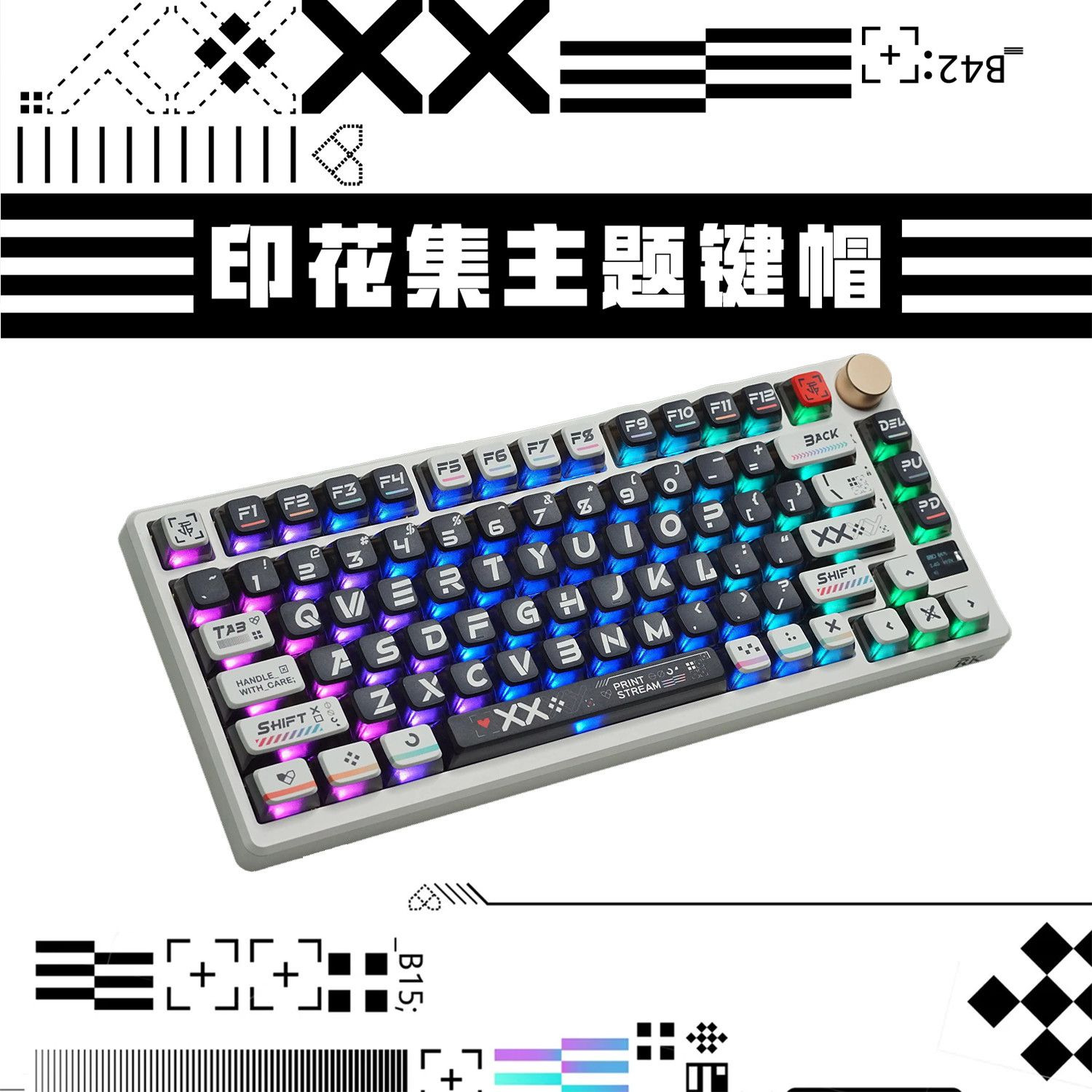 CS 프린트 세트 푸딩 더블 스킨 밀크 PBT 열승화 반투명 기계식 키보드 키캡 소형 풀세트 방수 내구성