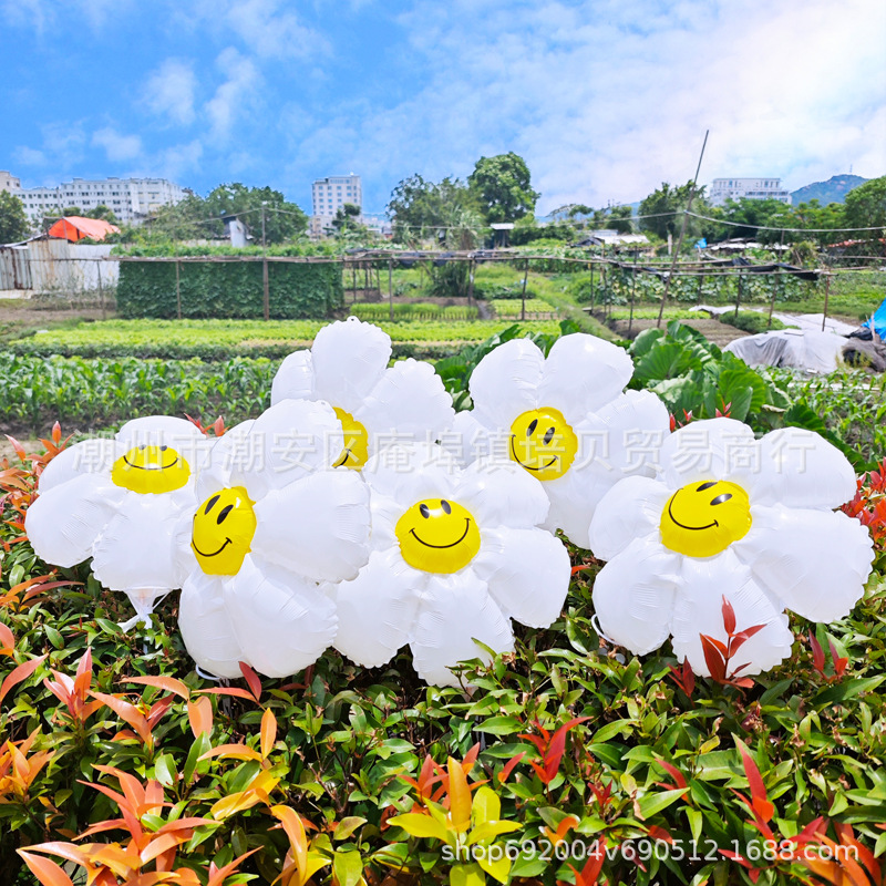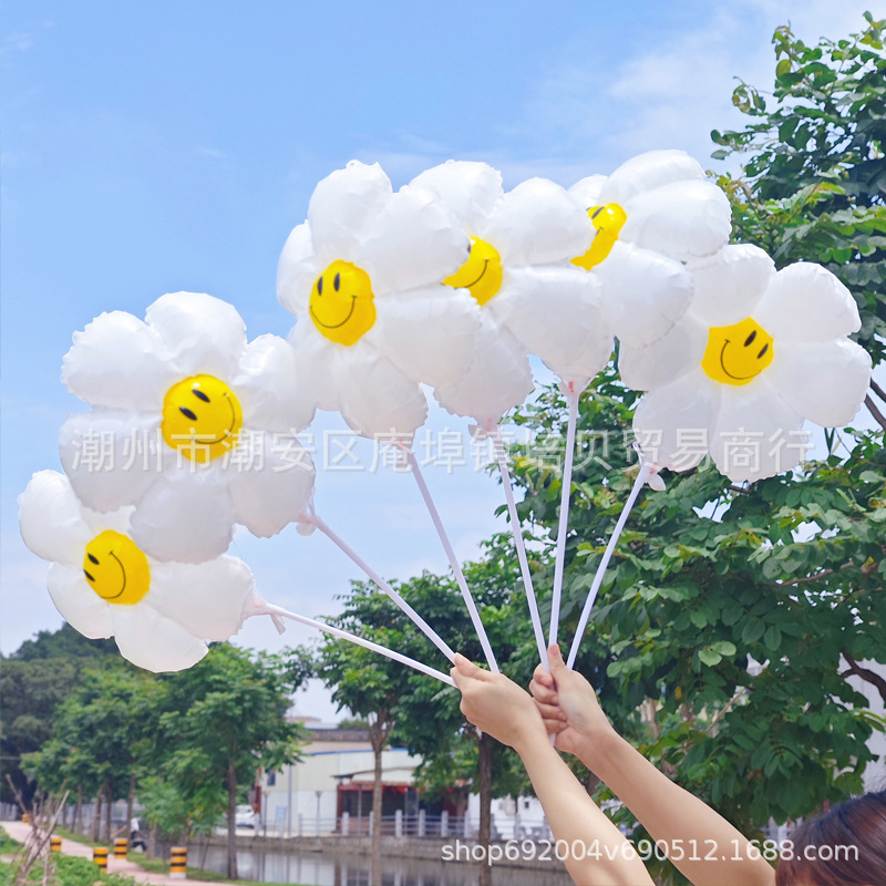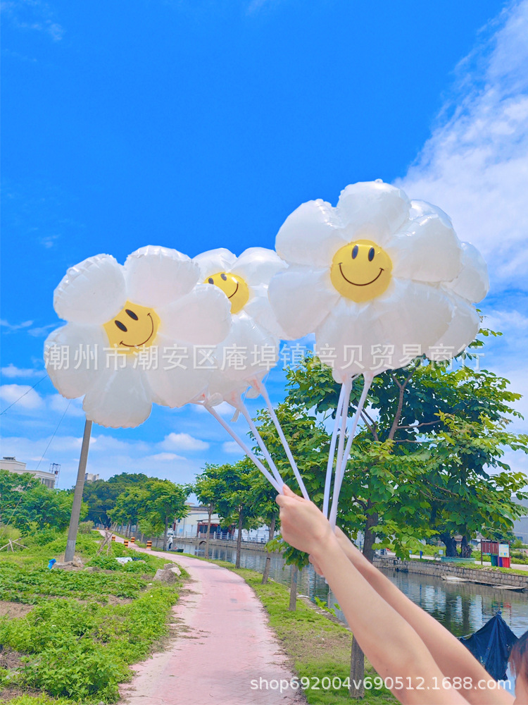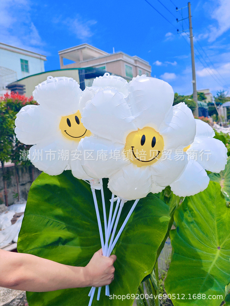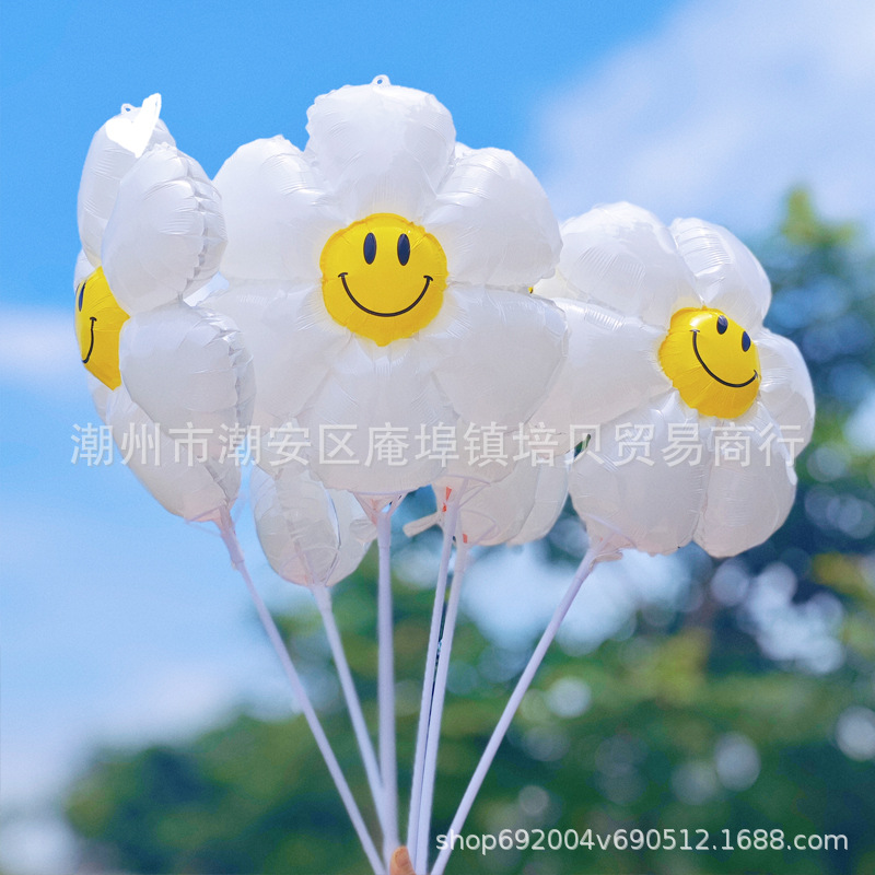 인터넷 연예인 데이지 풍선 어린이 유치원 장식 흰색 해바라기 대형 웃는 얼굴 알루미늄 필름 풍선