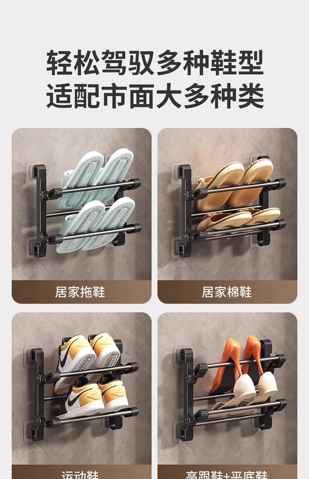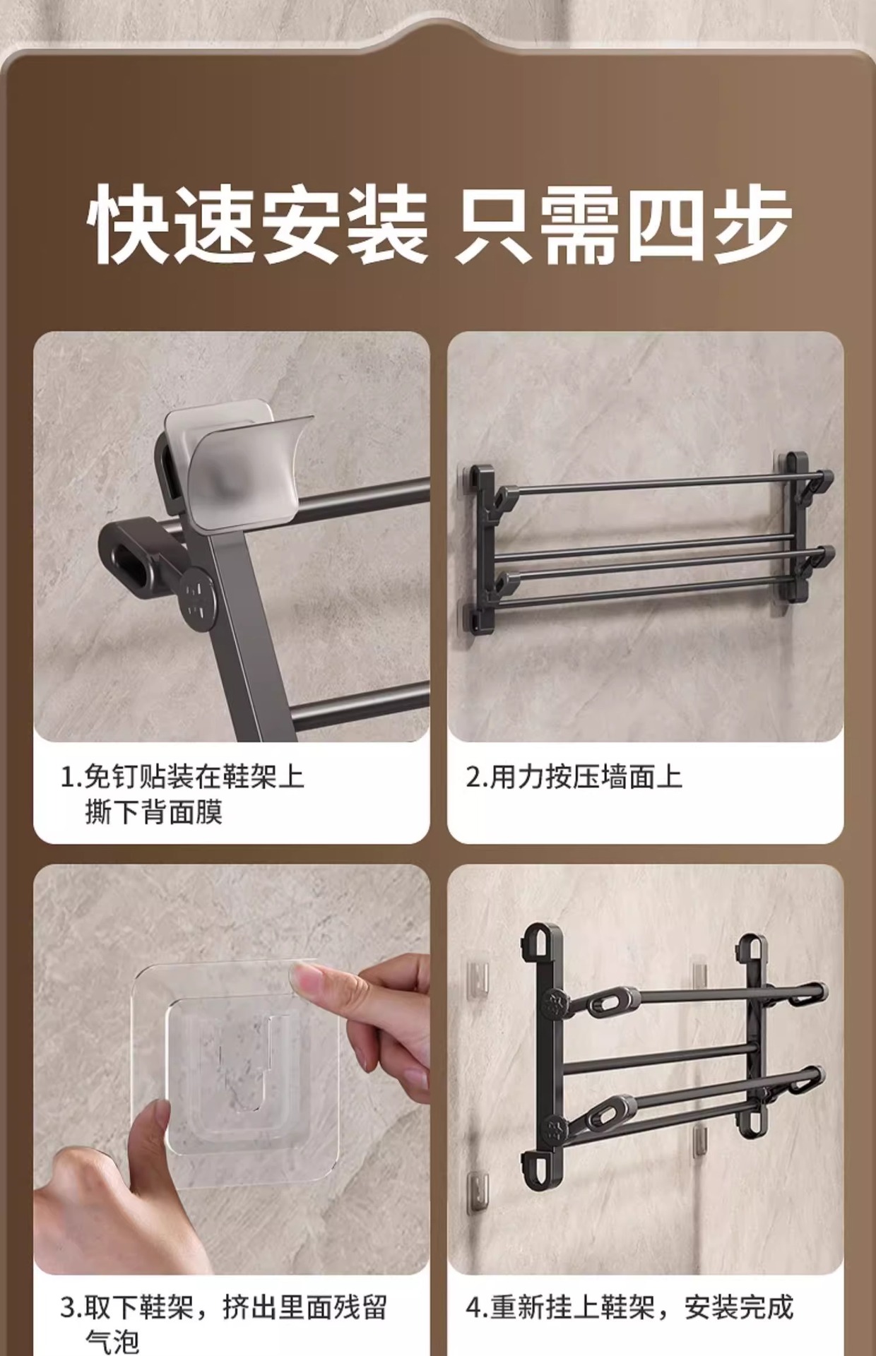 펀치없는 슬리퍼 랙 접이식 신발 랙 욕실 랙 슬리퍼 랙 벽걸이 형 다기능 랙