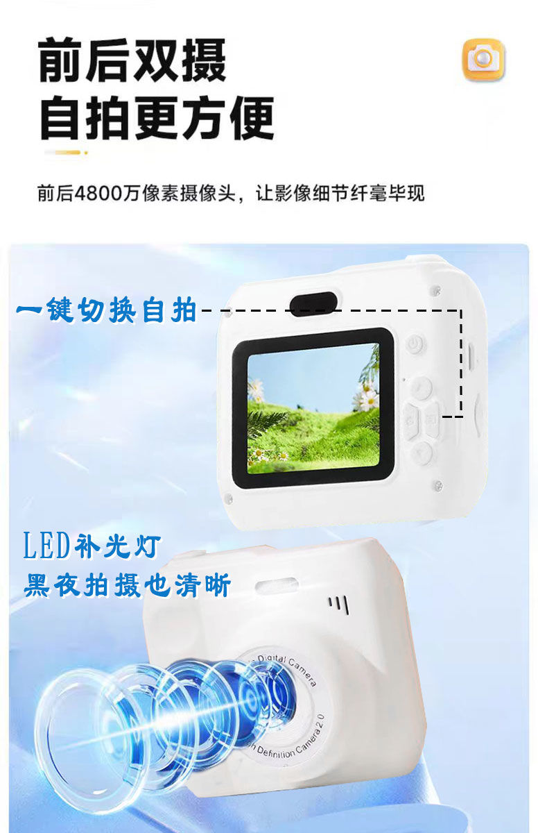 어린이 카메라 인쇄 학생 파티 디지털 카메라 3세 7세 휴대용 소형 캠퍼스 고화질 폴라로이드 비디오