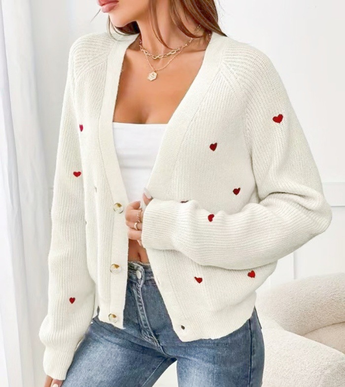 국경 간 대외 무역 아마존 사랑 자수 스웨터 재킷 유럽과 미국의 가을, 겨울 싱글 브레스트 v 넥 스웨터 카디건 여성용스토어 가기