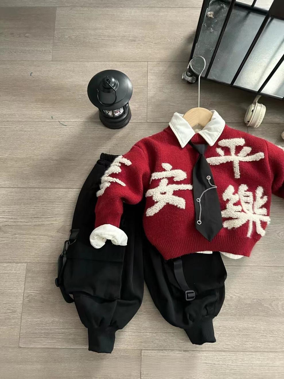 넥타이가 포함된 남아용 겨울 벨벳 셔츠, 트렌디하고 멋진 아동용 따뜻한 베이스 셔츠, 대학 스타일 남아용 한국식 상성롱