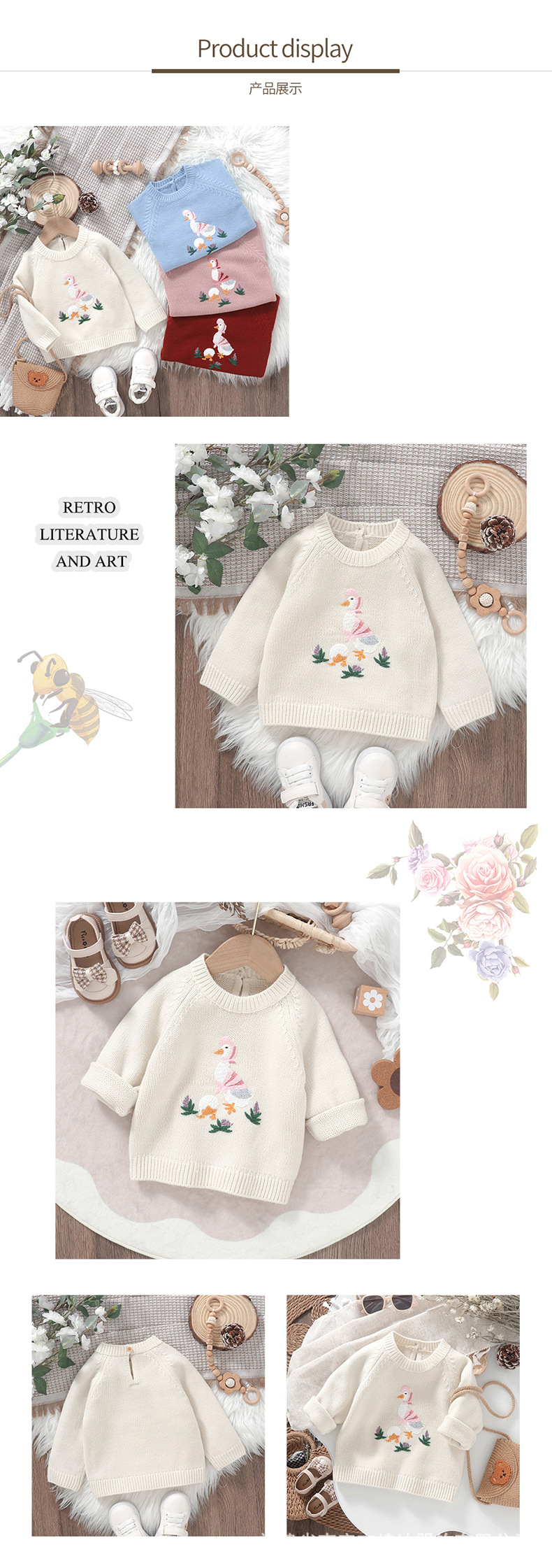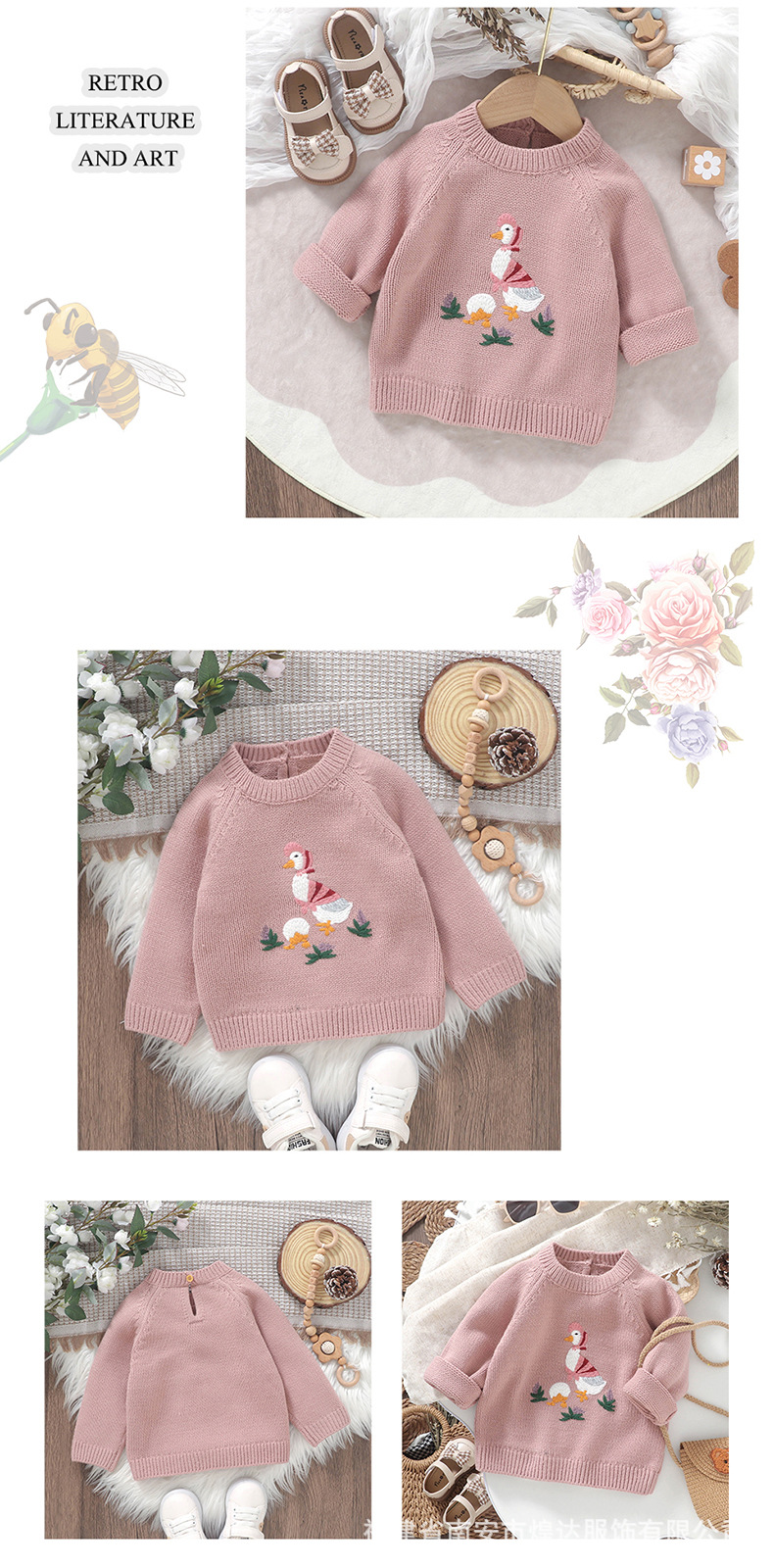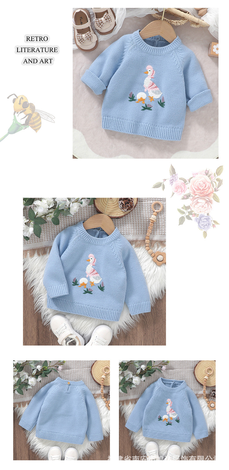 Ins 뜨거운 판매 가을, 겨울 새로운 스타일 유아 귀여운 작은 오리 수 놓은 탑 남성과 여성 아기 귀여운 니트 스웨터