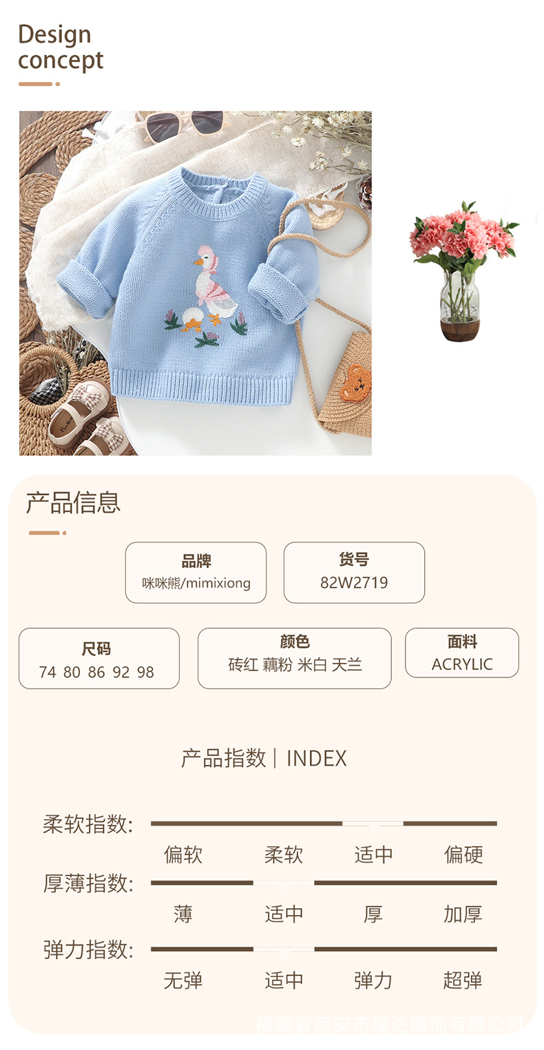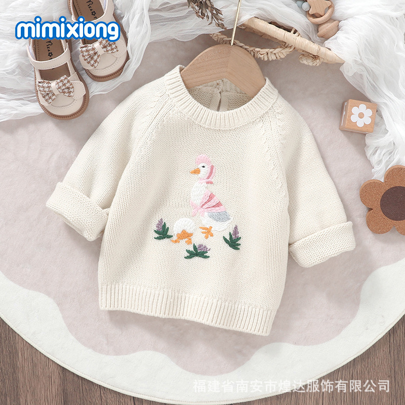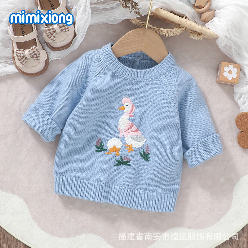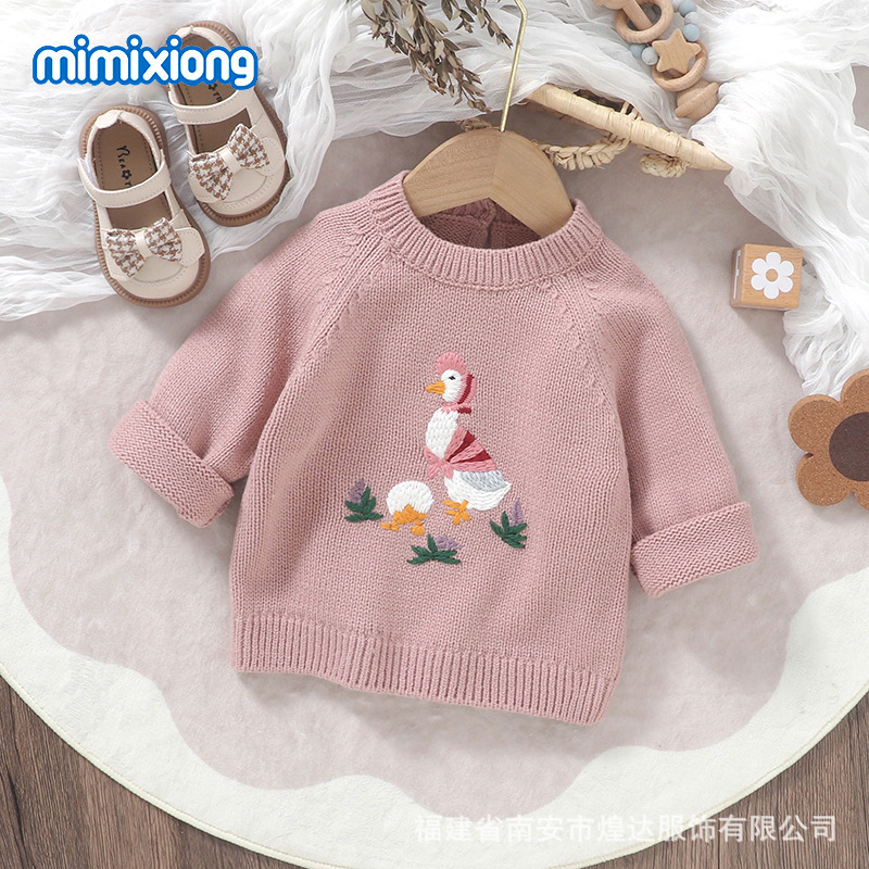 Ins 뜨거운 판매 가을, 겨울 새로운 스타일 유아 귀여운 작은 오리 수 놓은 탑 남성과 여성 아기 귀여운 니트 스웨터