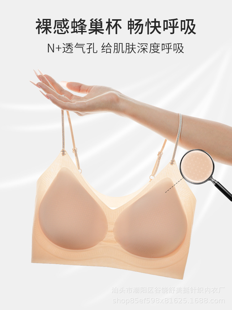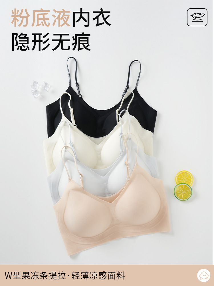 트레이스리스 인비저블 리퀴드 파운데이션 언더웨어 젤리 소프트 서포트 초박형 스파게티 스트랩 고정 컵 푸쉬업 뷰티 백 슬링 브라