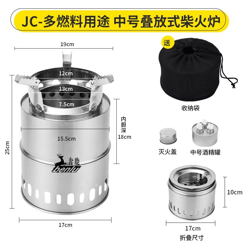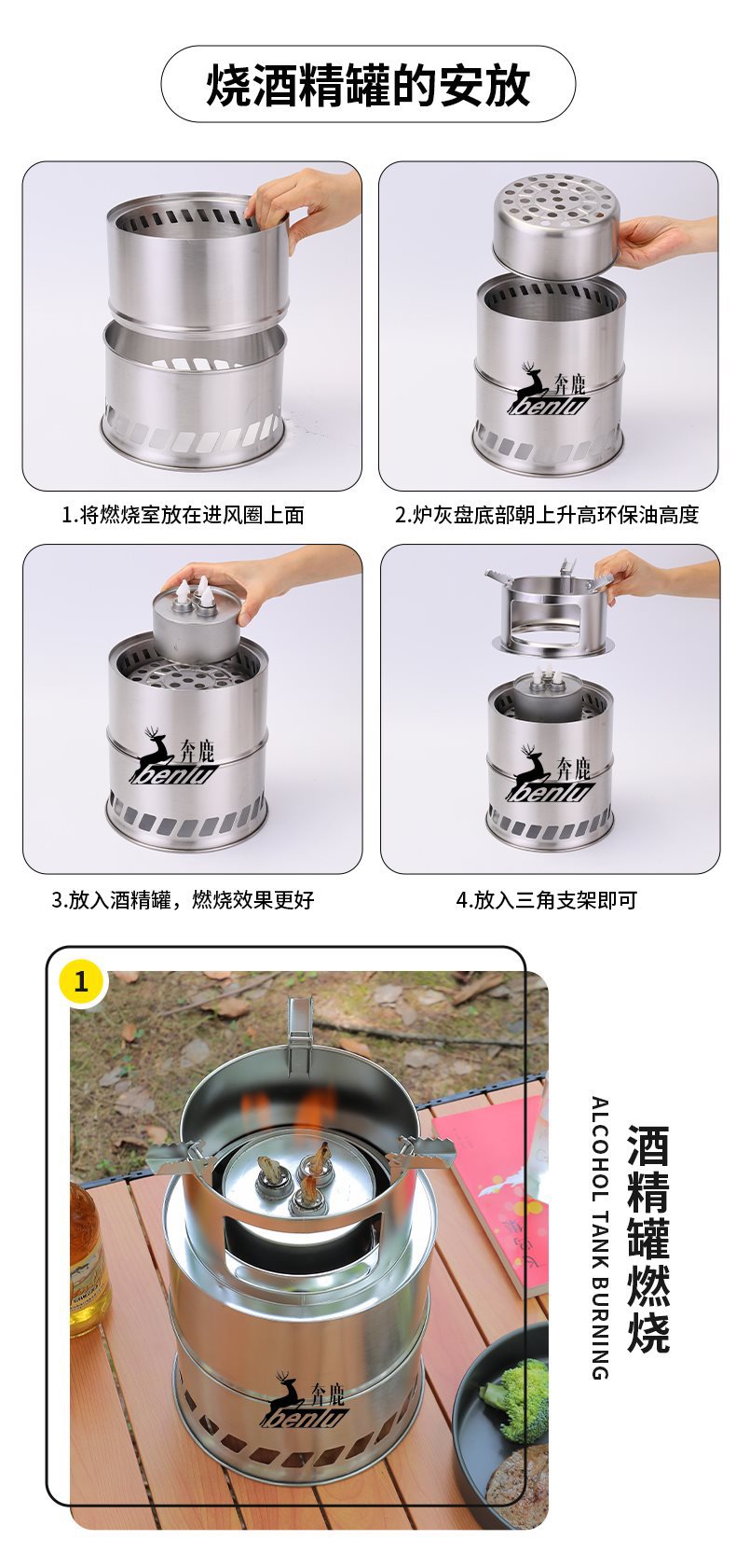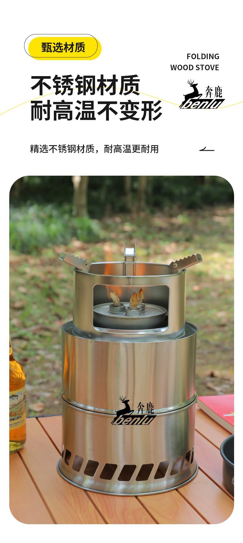 야외 휴대용 스테인레스 스틸 접이식 장작 스토브 피크닉 캠핑 장작 바베큐 탄소 고체 알코올 스토브 버너