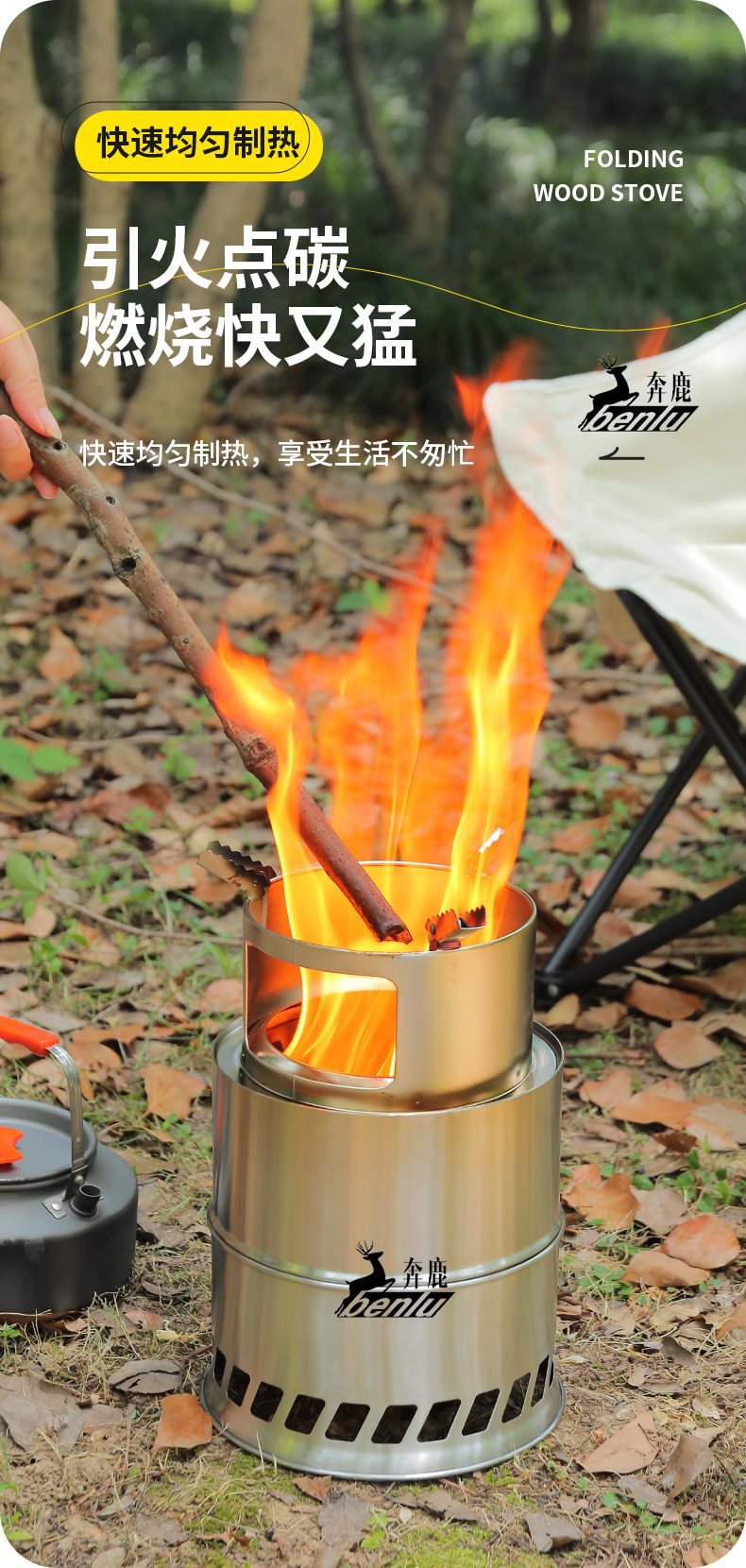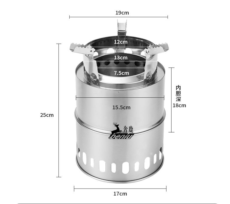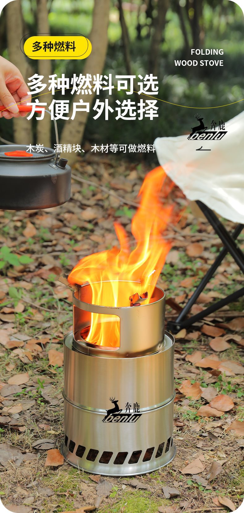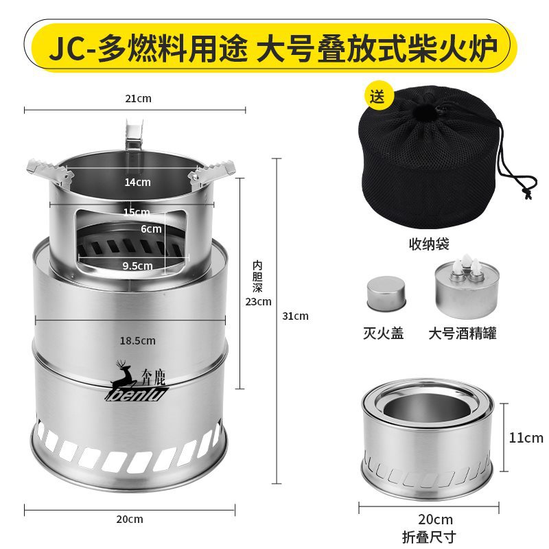 야외 휴대용 스테인레스 스틸 접이식 장작 스토브 피크닉 캠핑 장작 바베큐 탄소 고체 알코올 스토브 버너