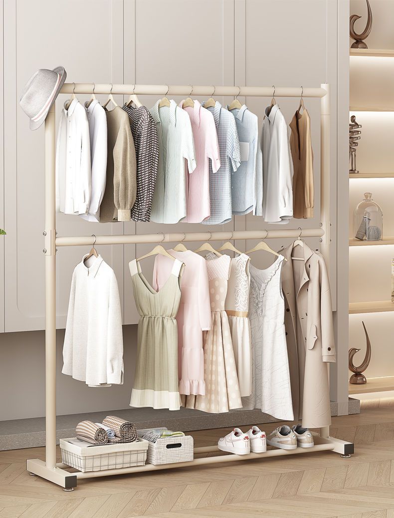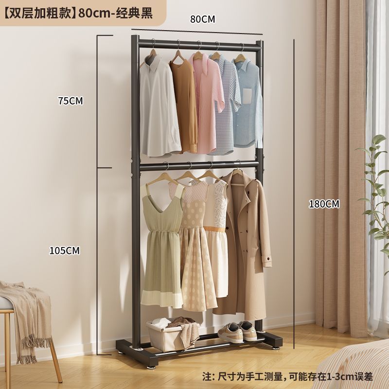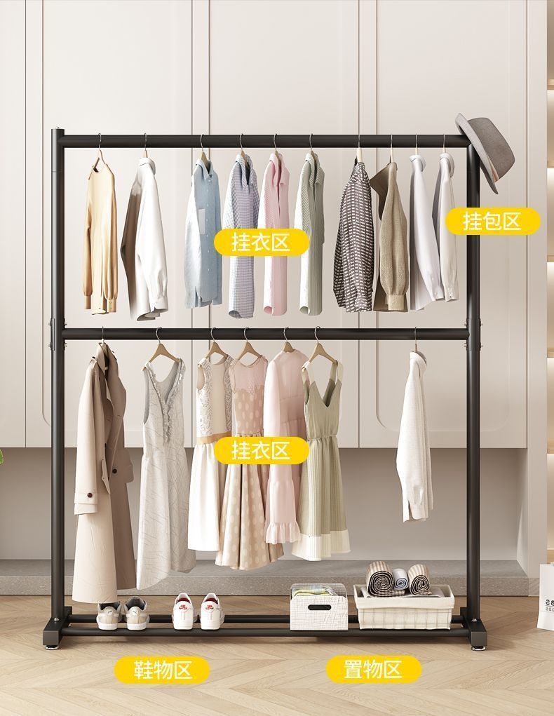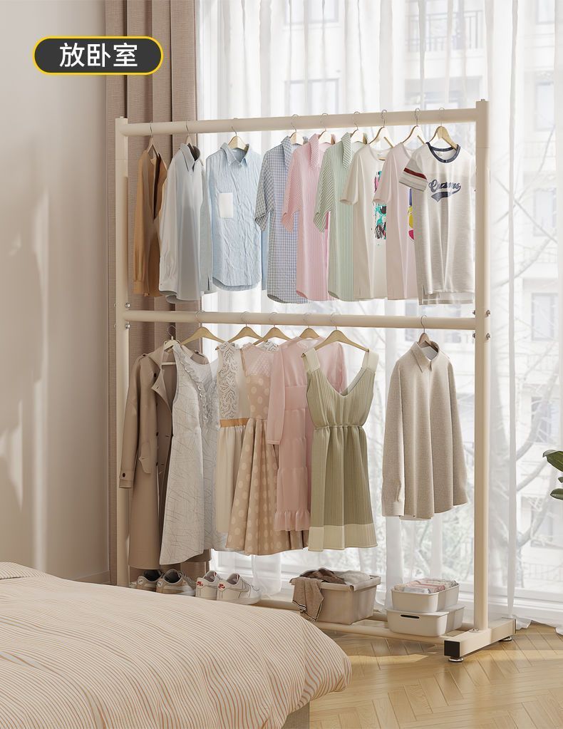 옷걸이 랙 바닥에서 천장까지 세로형 더블 레이어 임대 주택 침실 접이식 발코니 기숙사 간단한 옷걸이 랙 옷걸이스토어 가기