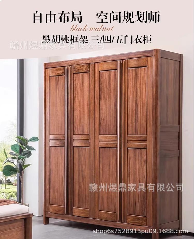 단단한 나무 옷장 3 또는 4 도어 5 도어 침실 간단한 검은 호두 새로운 중국 스타일 오픈 도어 스토리지 대형 옷장 스토리지 가구스토어 가기