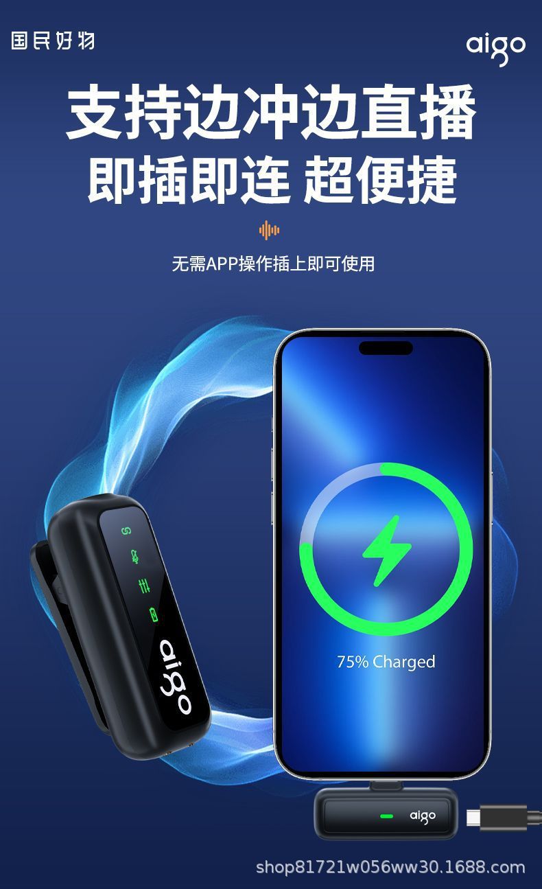 패트리어트 S21 무선 라발리에 마이크, 틱톡 방송 녹음 및 영상 촬영용, 노이즈 감소 마이크