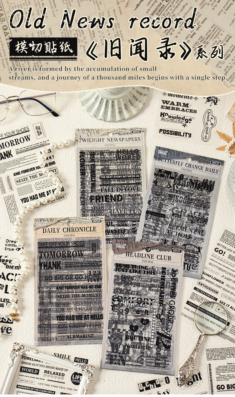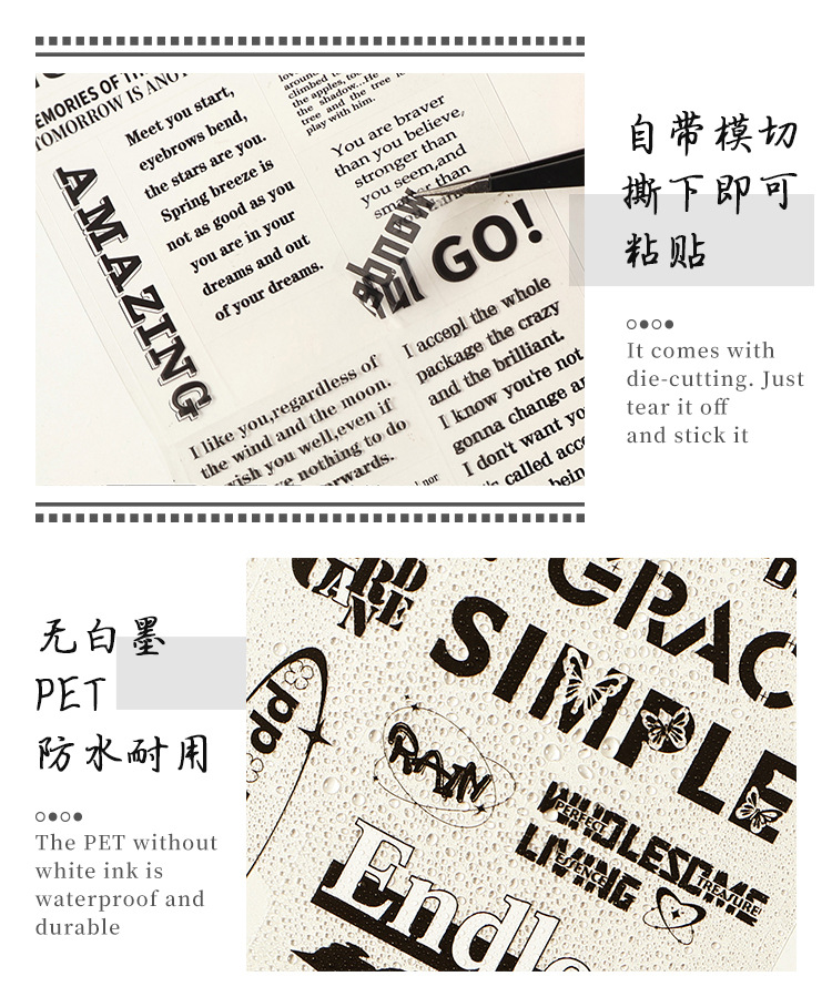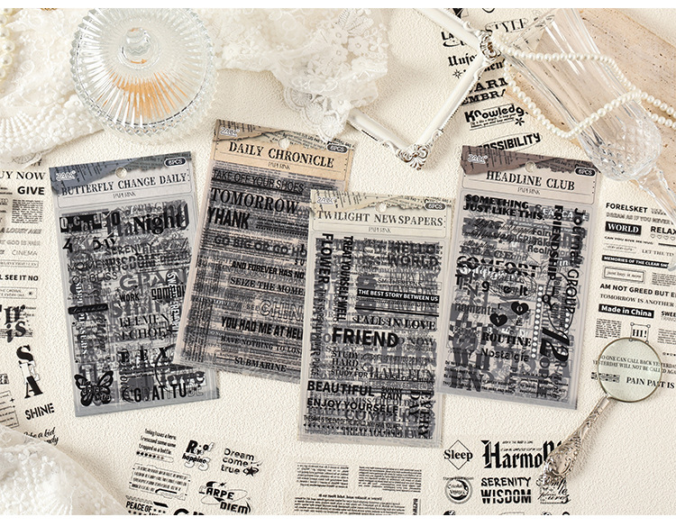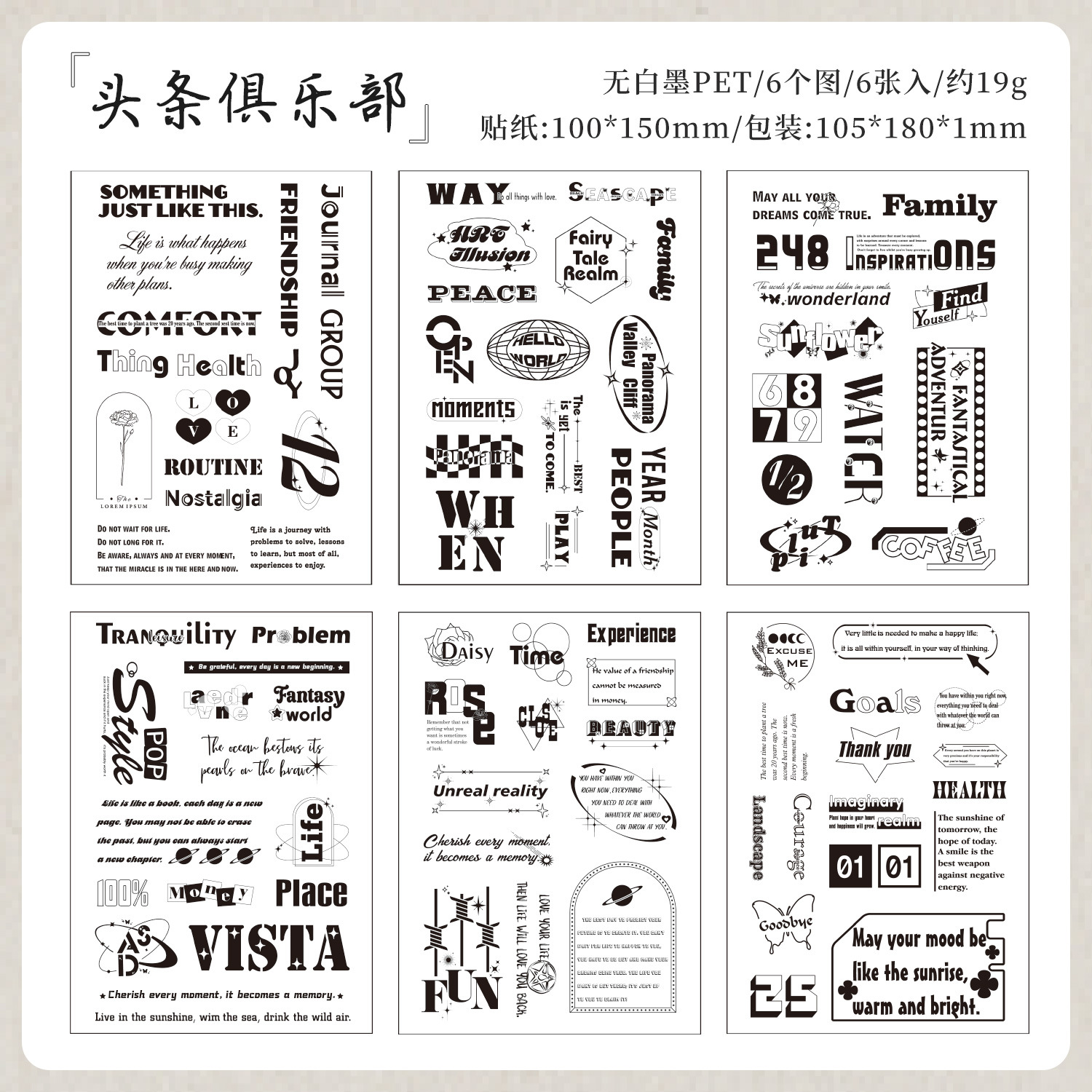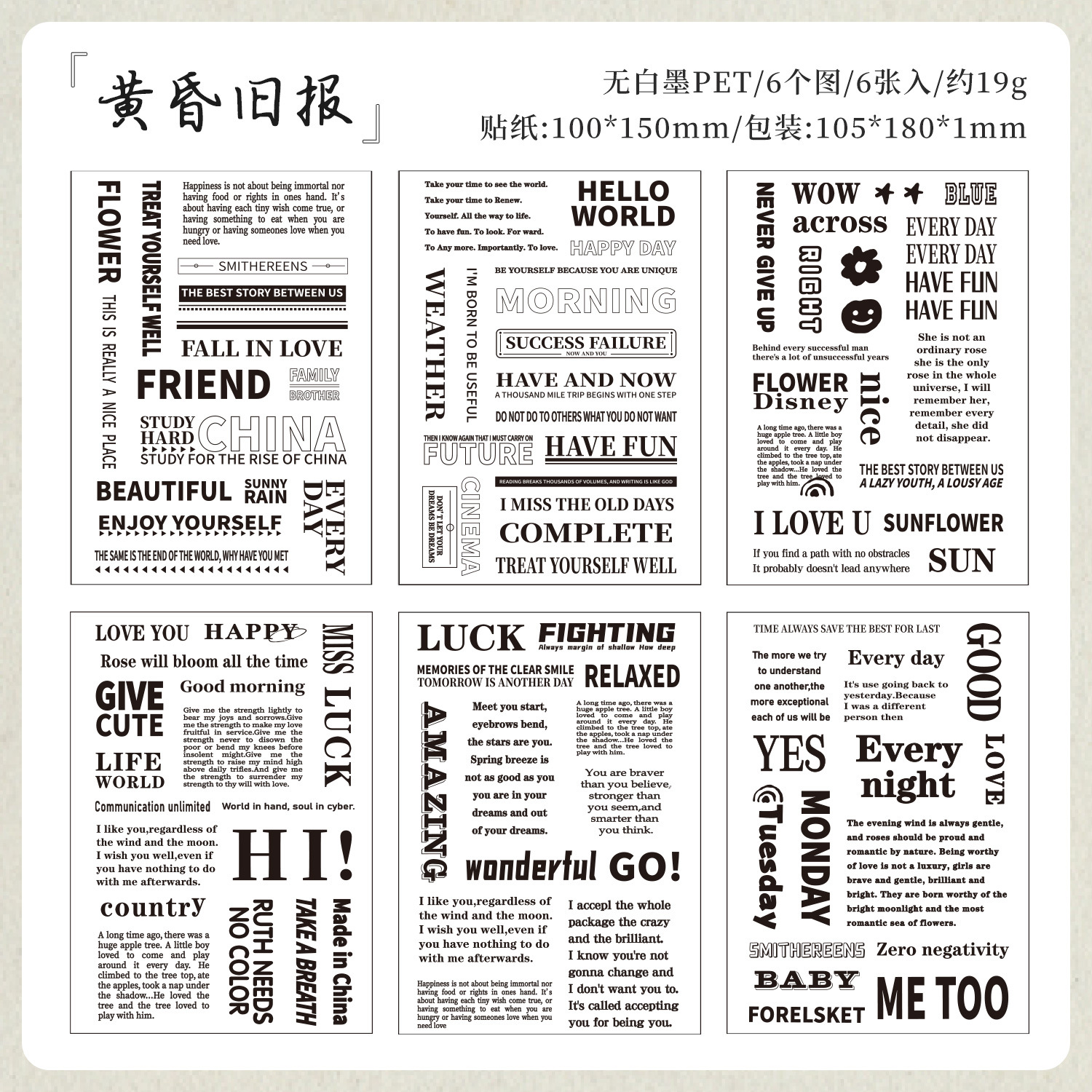 오래된 뉴스 투명 방수 애완 동물 스티커 diy 핸드북 일기 스티커 국경 간 검정색 영어 문자 문구 스티커스토어 가기
