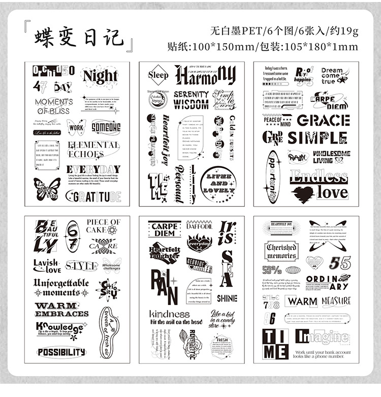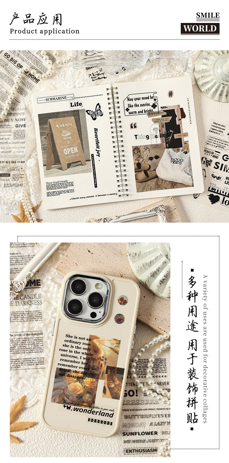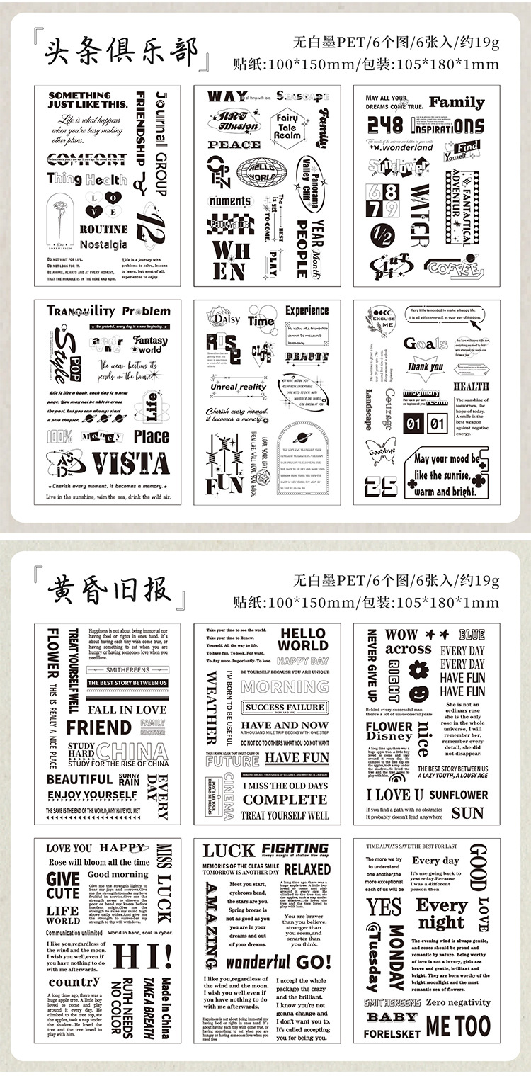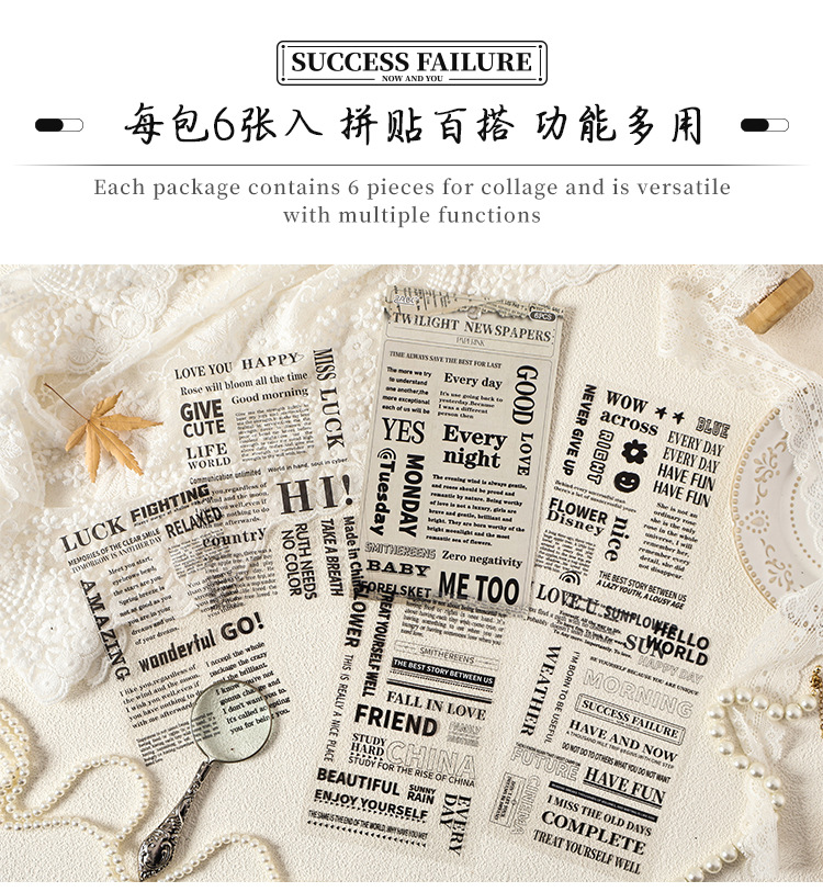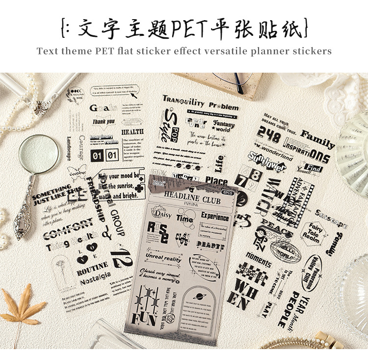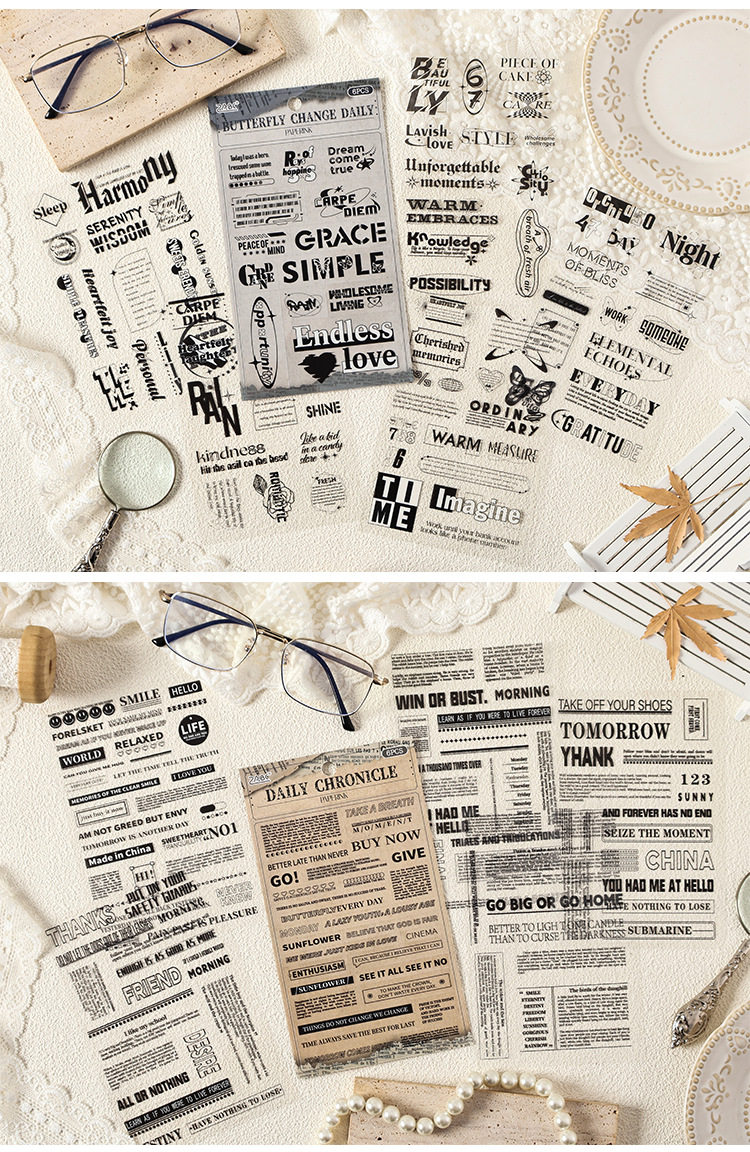 오래된 뉴스 투명 방수 애완 동물 스티커 diy 핸드북 일기 스티커 국경 간 검정색 영어 문자 문구 스티커스토어 가기