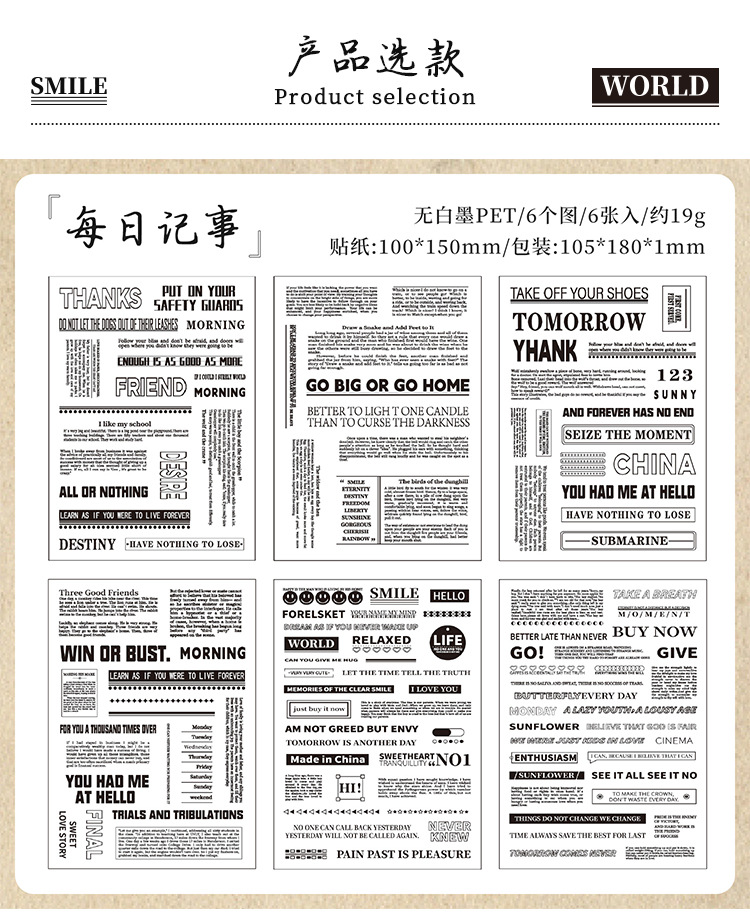 오래된 뉴스 투명 방수 애완 동물 스티커 diy 핸드북 일기 스티커 국경 간 검정색 영어 문자 문구 스티커
