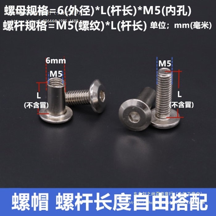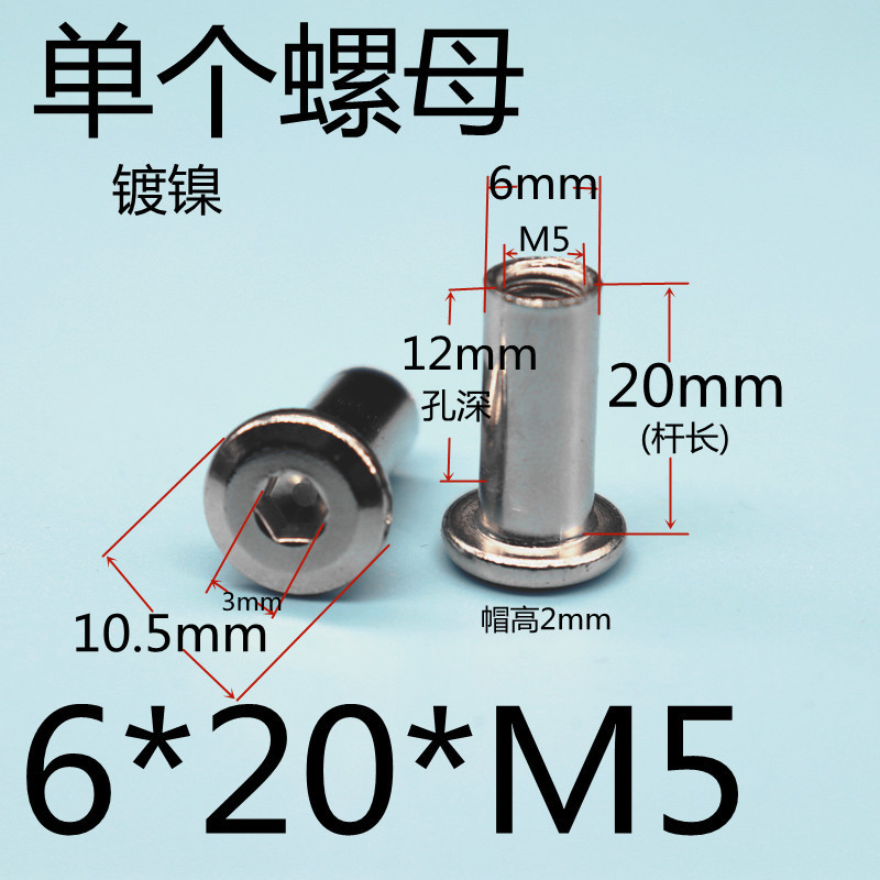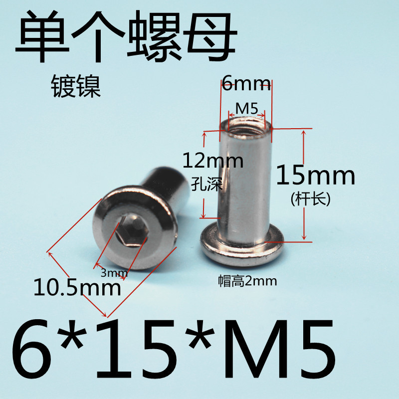니켈 도금 육각형 코너 잠금 너트 나사 스프래그 조합 연결 가구 부모-자식 M5 외경 6m Lederzhu스토어 가기