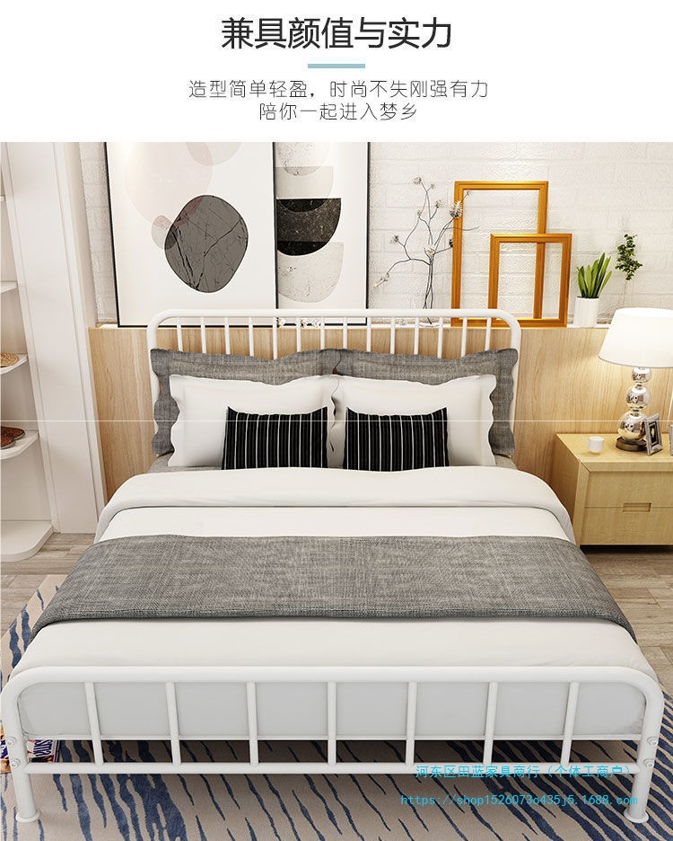 철제 침대 현대적인 단순 경제적 1.5m 더블 1.8m 어린이 철제 침대 임대 유럽식 싱글 침대 1m스토어 가기
